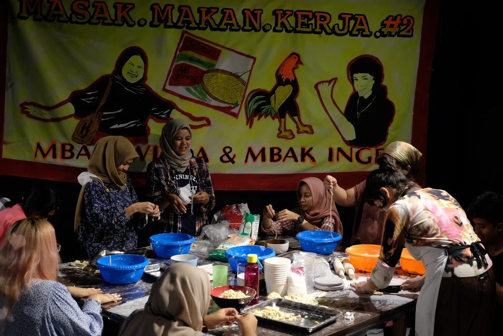 As I presented my research to the collective SIKU ruang terpadu, they asked the question if I might wanted to collaborate with memo.dapur in the recurrent event masak.makan.kerja. As SIKU holds every-now-and-then an open house, where difference events are being held, this would be a great opportunity to work closely with the community based in and around Makassar. I met Wilda, who's involved with memo.dapur which is an initiative made to examine and document everyday life by making the kitchen the gateway. I got the free hand of this session of masak.makan.kerja and told her how I wanted to use this workshop as a way to talk with the participants and their knowledge about instant noodles.