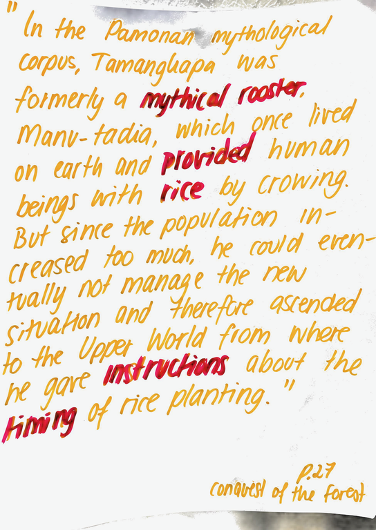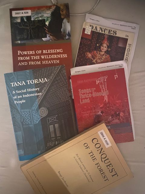Since I knew that rice was at the centre of attention, I wanted to know more about rice from Indonesia, to be even more precise the island Sulawesi. As the general knowledge of Indonesia in the Netherlands is mostly build around Bali, Java and Jakarta, I wanted to know more about Sulawesi, as that is the Island where my family is from. To be even more precise in my research, I looked into the village where my mom is from, and to which district it belonged; Mamasa and Toraja. And so I rented books from the Leiden University library, and got books that are connected to the region. I started with the dissertation; Conquest of the forest, as it is describing the full ritual circle of rice. The others give more information of why certain elements are the way they are, which was helpful for giving 'reason' to the actions within a ritual.