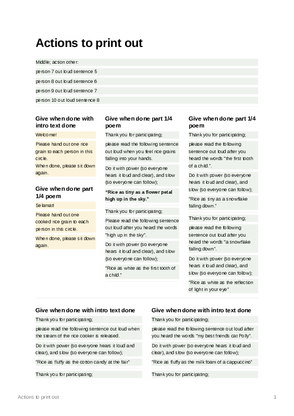 The reading of the phone, I’d like to do different. Maybe use participants to reiterate parts of the text with instructions. When one is doing this, you do this… (if this, then that…) << look into rituals how one action is connected to another action