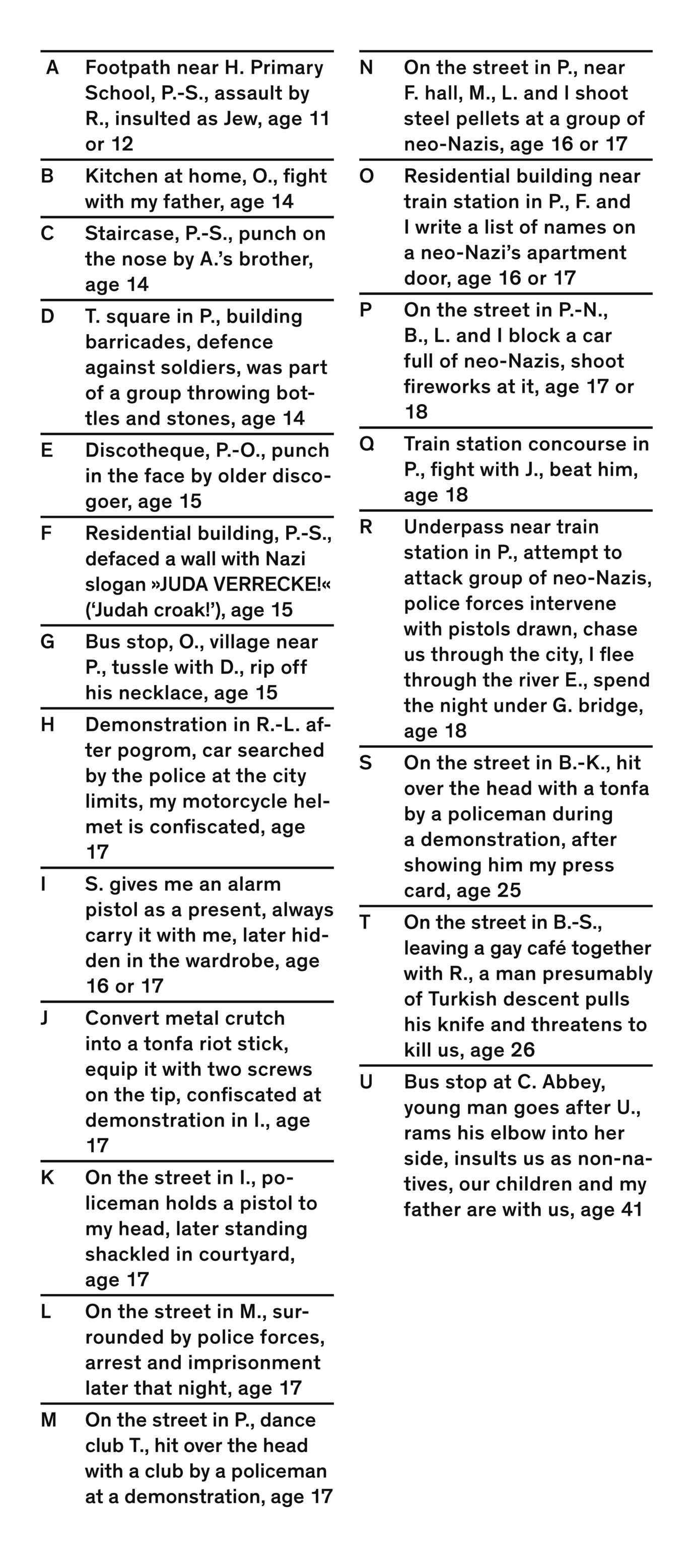 Through experimental writing and conceptual photography, my PhD uses my own biography to investigate the consequences of societal transformation processes in the German Democratic Republic (GDR). The focus is on the period of regime change known as the »Wendezeit« in the late 1980's to the early 1990's in East Germany. To date, this subject has been analysed primarily by scholars of history and cultural sciences, while approaches to this topic by artistic researchers are still rare. With my research, I would like to reveal causes for the outbreaks of violence that accompanied this radical shift. The objective of my PhD is thus to submit critical testimony to the silence about seldom-discussed side effects of the transformation during and after the turnaround which Germans call the »Wende«. Based on the example of (my own) individual history, it demonstrates how authoritarian regimes and structures impacted on three generations of citizens, and how they affected the individuals. Throughout an experimental narrative, outbreaks ofsenseless violence are treated as side effects of disruptive transformation processes, just as are ambivalent situations in which actors of social change recognise themselves to be simultaneously victims and perpetrators of violent incidents. Since personal memories and historical documents served as the basis of this work, the central challenge of my artistic research was to carve out generalisable elements from individual examples, and to try out and experiment with various textual and photographic formats to find an adequate way to present the research material. Important sources of inspiration for this process included works like Alexander Kluge’s »Lebensläufe« (‘Case Histories’), Primo Levi’s »Ist das ein Mensch?« (‘If This Is a Man’), Walter Benjamin’s »Denkbilder« [Thought-Images], Klaus Theweleit’s »Männerphantasien (‘Male Fantasies’), Georges Didi-Huberman’s »Bilder trotz allem« (‘Images in Spite of All’), Claude Lanzman’s documentary film »Shoah«, and W.G. Sebald’s novel »Austerlitz«. The result of my research is an experimental book that portrays the multidimensional nature, polyphony and complexity of the subject, and offers the readers an opportunity to deal with the material in the way they desire, and perhaps to make it useful for their own work and research.