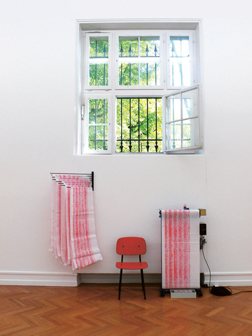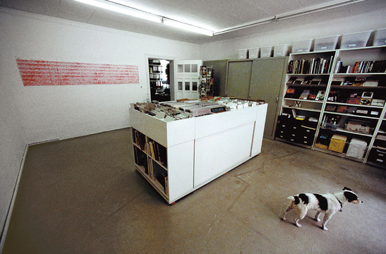 The installation 'Luginsland' is one of five works that engaged with the Kunsthalle Bern and that were shown there as part of the group exhibition 'Pre-Emptive' from August 18 to October 8, 2006. The installation consists of two seismometers set up next to one another on the floor at the end of the last room (no. 7) in the basement of the Kunsthalle. The cable of one of the seismometers disappears into the wall, while the cable of the other leads along the window side of the room to an analogue recorder. The latter, at approximately chest-height, records in red ink the measurements on a hanging role of paper. The pen is constantly moving, sometimes oscillating more, and sometimes less. At the end of every full minute, which is regulated by a radio clock, a marker is set. To the left of the device, at a height of about 1.8 metres, a holder is attached to the wall with eight arms that can be swivelled and on which blank or already inscribed paper rolls are hanging. Marked on the sheets are the time, week and date of the measurement, and across the sheet in the corresponding areas “Monday”, “Tuesday” and so on up to “Sunday”. Contextual events are emphasised with notes such as “earthquake in Kamchatka” etc. Between the seismographic recorder and the seismogram holder is a chair. All three are arranged below a window of which one pane is open.