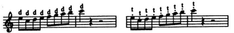 This observation about unarticulated phrases is in fact a fascinating combination of two different approaches; According to one approach, in the absence of articulation instructed by the composer, the performer should use a non-legato style of articulation. The other approach is more relevant to virtuosic solo performance style and encourages the performer to articulate as he finds fit according to the movement’s mood, and his own taste and abilities.6