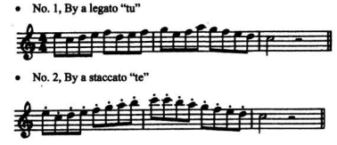 "Tongue strokes are essential for expression; they are to wind instruments what the bow is to stringed instruments like violin, viola and bass. The fortepiano, the harp, the lyre or the guitar, in the absence of a bow, use a sensitive expression to attack and to make the first note of a song or of any passage be felt."
