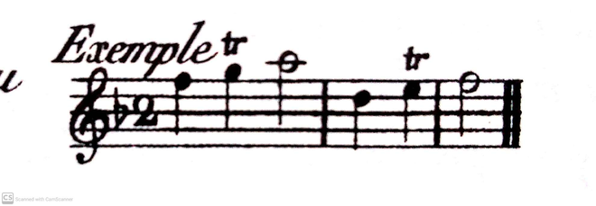 The trill - literally translates from French as “cadence” - is consistently described by Vanderhagen as a fast movement between the written note marked with tr or + , and the note located one diatonic step above. The trill should start at a moderate speed, and accelerate gradually as it goes before the resolution.