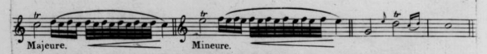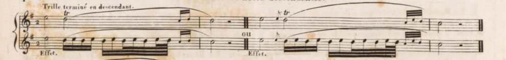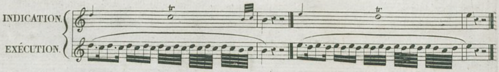 Despite the changing taste regarding the execution of trills, methods for the clarinet written as late as the 1820s suggest that French school musicians stuck to the prepared trill well into the nineteenth century. For example, Vanderhagen himself included examples showing trills starting from above in his 1819 method, Nouvelle Méthode de Clarinette Moderne à Douze Clés (example 8.3).