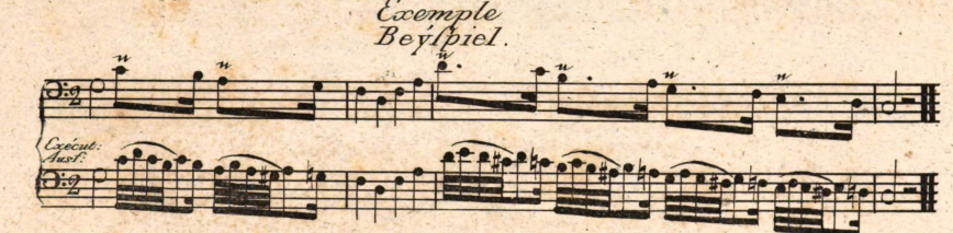 Vanderhagen did talk in his 1785 book about instances where the player does not start the trill from above, naming it “sudden” or “non-prepared” trill, which can be used in certain situations, as demonstrated in the following example (8.1).