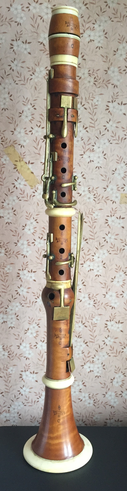 Example 3.6: Clarinet by Jean-Jacques Baumann (Paris). c, 1815, made of boxwood and ivory, 12 keys mounted on posts, features a divided barrel (Jane Booth Collection)