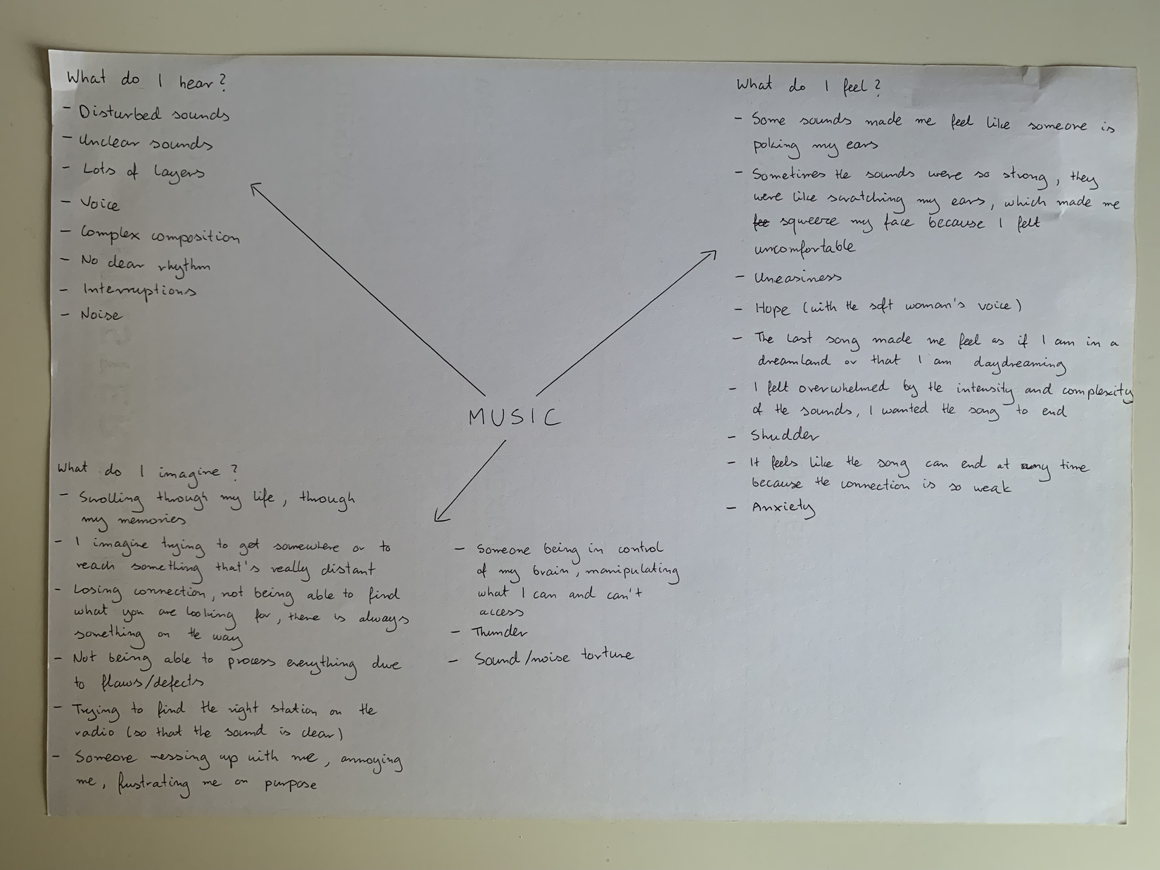 - Sat and listened to the music one more time and wrote things down as they came to me (writing while listenting)