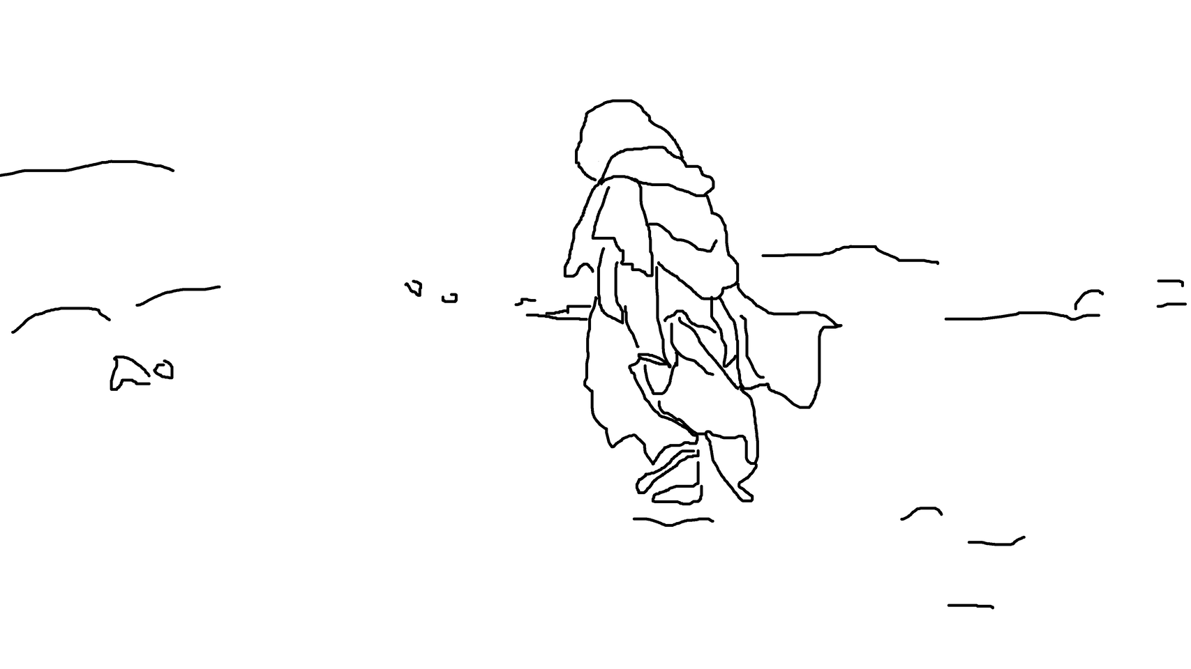 The winter setting of Quintet exists outside place, due in part to the snow and icescape effacing details of the land. It also exists beyond time. In his recent book The Idea of North, Peter Davidson writes of the north as the end of our geographical imagination. 'Direction is suspended at the North and South Poles; they are places outside place' (Davidson 2005, 13). Nuclear winter results in a north beyond our temporal imagination. The action of Quintet takes place in the future, but it is hard to determine how many years hence. Again it is the winter landscape that obfuscates our understanding of the time period. The film opens with a long travelling shot showing a train frozen in the snow. The aforementioned scenes indicate a time after an environmental catastrophe has left the world a frozen wasteland. Davidson writes that since Scott’s ill-fated polar expedition, 'there is a presupposition attending ideas of north of disaster, loss, expeditions that fail to return' (ibid.) The image of Scott's failed expedition to the South Pole is recalled in the first scene of Quintet as two figures are shown struggling to make their way through a harsh frozen landscape reminiscent of cinematic depictions of Antarctica.