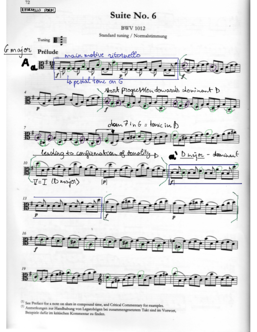 In Bach, an element that is of importance of distinguishing harmony and melody are the slurs. However, I feel as there is so much discussion about this as we do not have the original manuscript, that this is the performer’s responsibility to put slurs to bring out the lines as they picture the music and to enhance the big structure. This stays however an important tool in the Cello Suites.