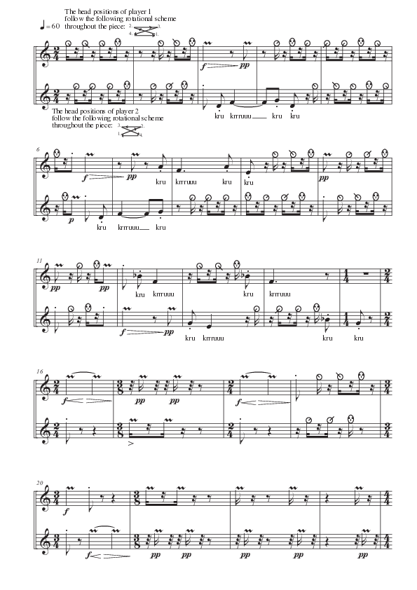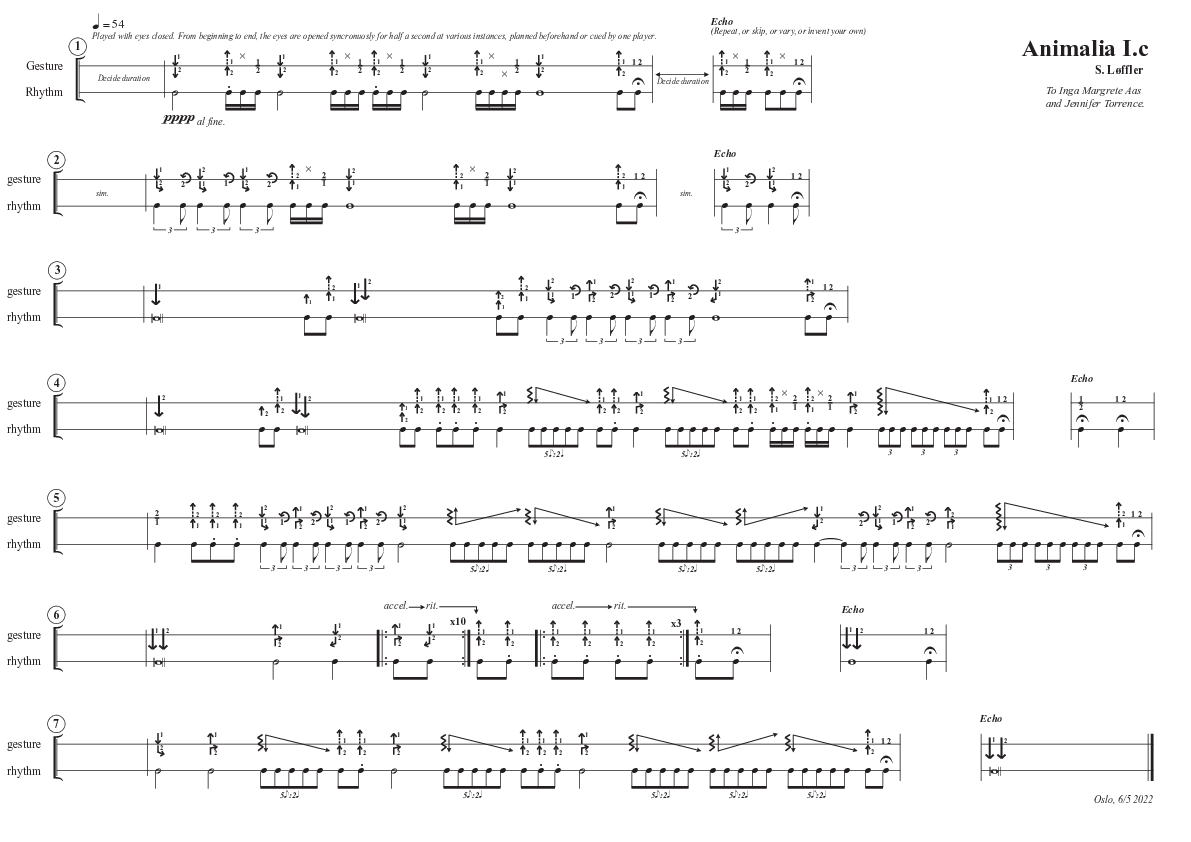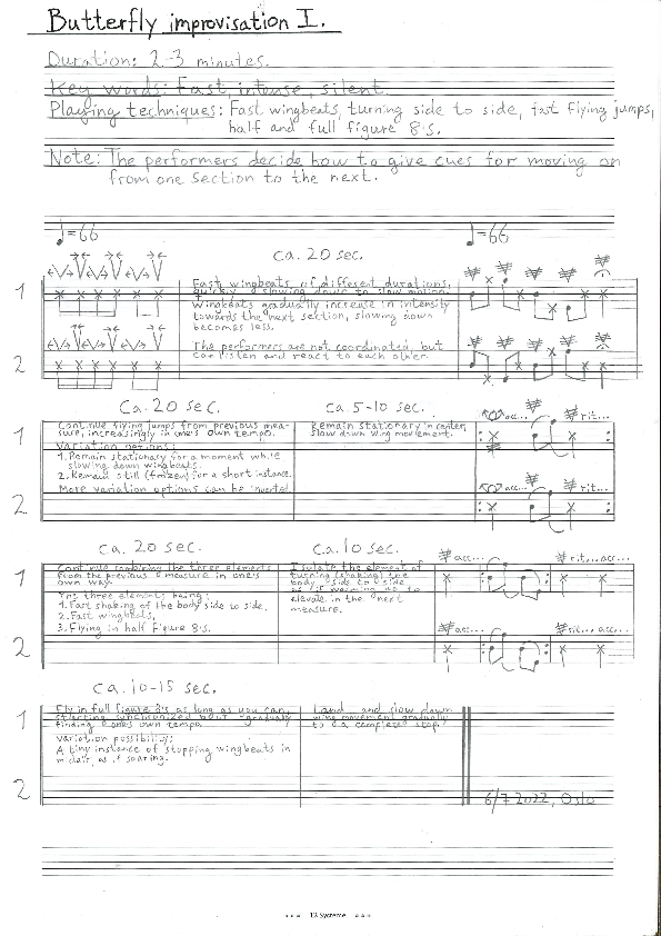 As the scores below have yet to be prepared for a public, some of them lack proper performance instructions. While their symbols will in most cases be self-evident from the video documentation, there will be details in performance that deviate from whats written. These were part of an collaborative process between composer and performer.