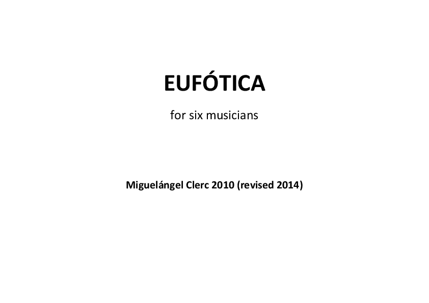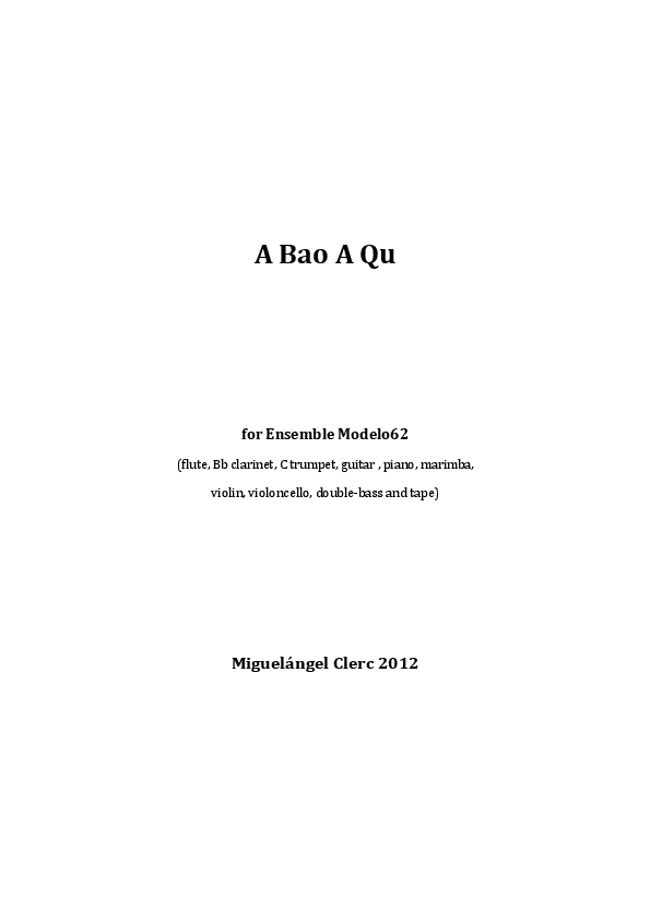 This dissertation of Miguelángel Clerc Parada explores various perspectives on the term immersion, and its relation with, and transformation through, a composer’s practice. Immersion is presented as a key term to interconnect diverse aspects of musical practice and music listening with their various phenomenological and ontological implications. Immersion through music is proposed as a transitional experience that exposes and interrelates multiple layers of reality, questioning critically the tendency to think immersion as an experience within a particular or self-contained space (in music, in a book, in a virtual environment, in thoughts, in water, in a music hall, etc.). The compositions What about Woof? (for five percussionists and video installation), La línea desde el Centro (for twelve guitarists), Eufótica (for six percussionists and tape) and A Bao A Qu (for nine musicians and tape), analyzed and developed through the research trajectory, are the main artistic source to develop the ideas of each chapter of this investigation. The compositional processes described and the reflections about immersion derived from them offer diverse perspectives on the practical and phenomenological aspects of music composition, performance and listening.