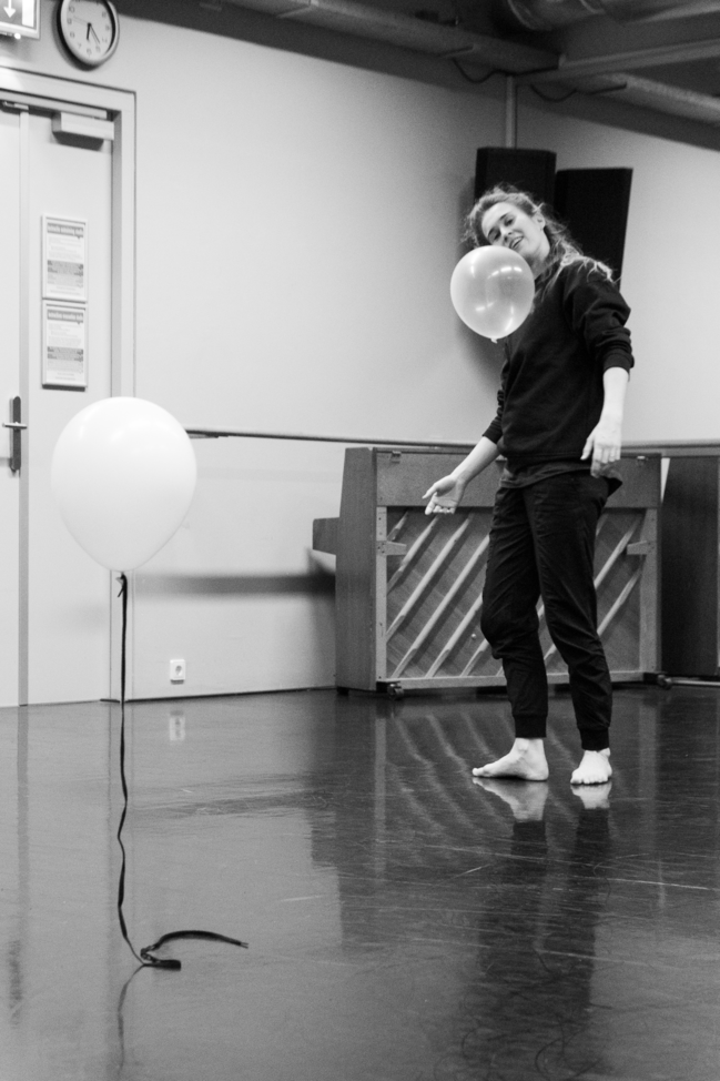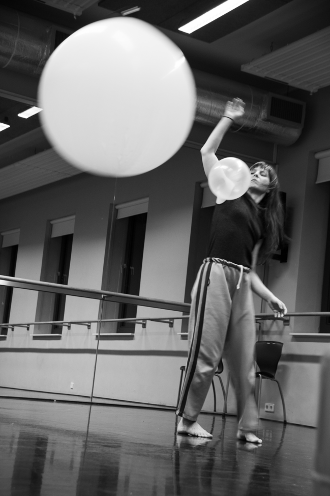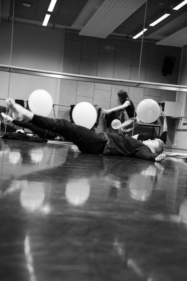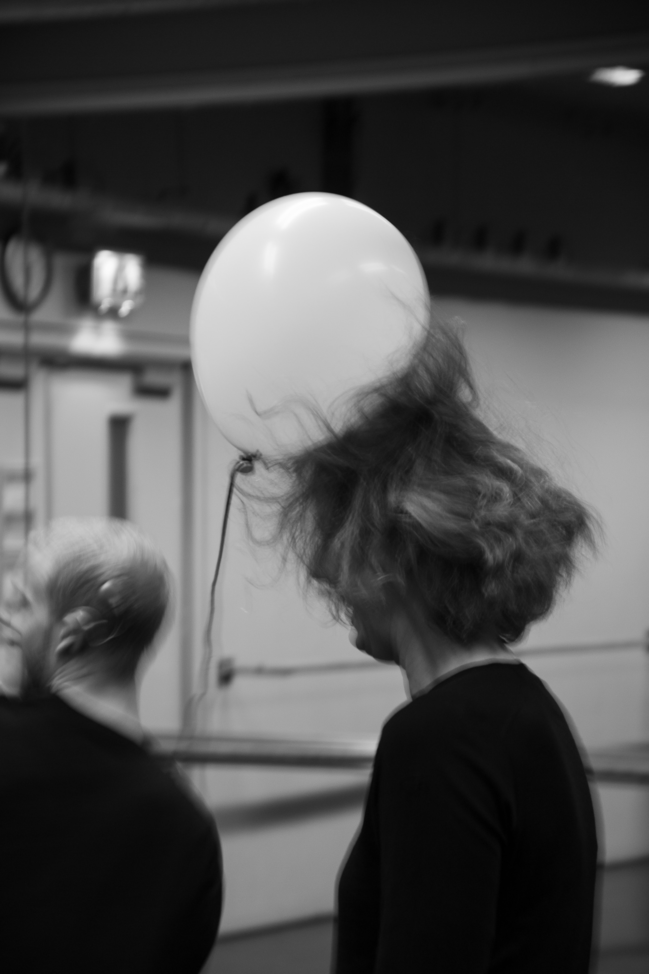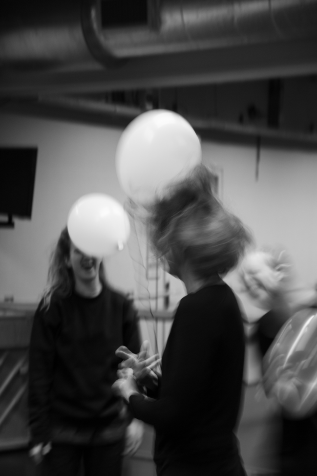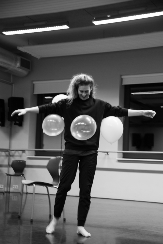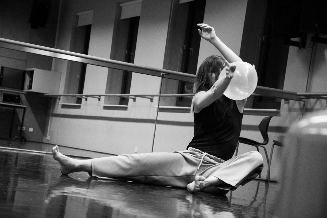 In the second part of the rehearsal, we played with the balloons. We were surprised by the quality of care that was emerging. The balloons stay attached to your body so they feel like a pet or some kind of animated cute creature that you need to take care of.
