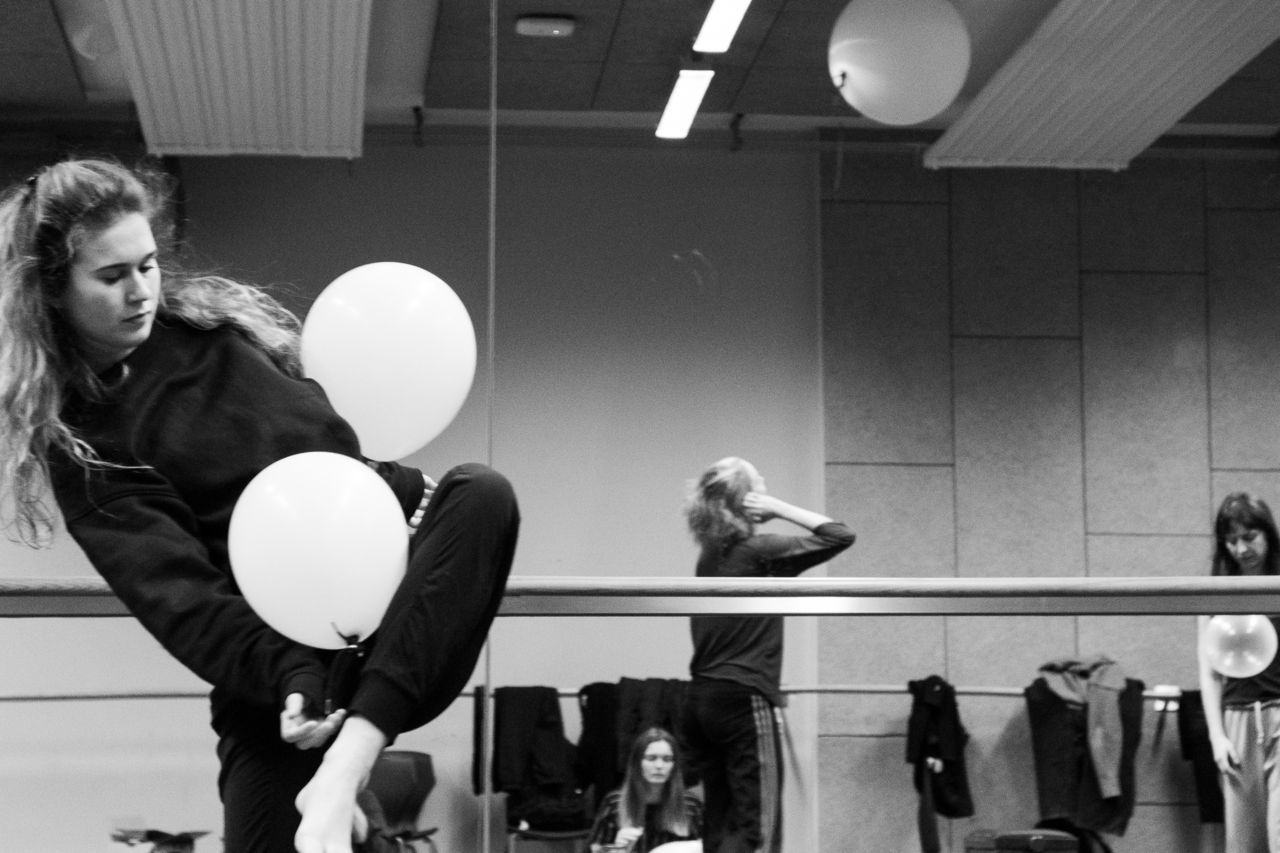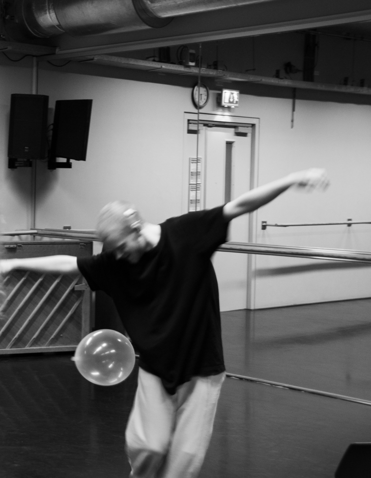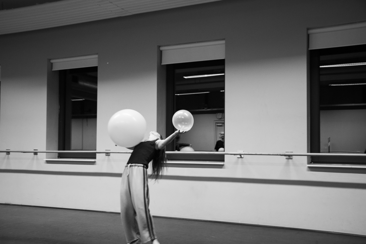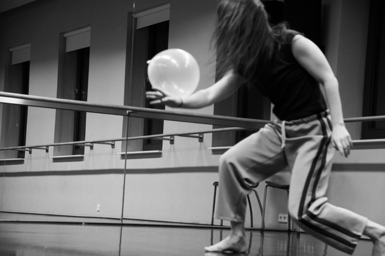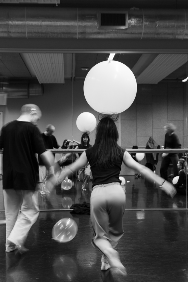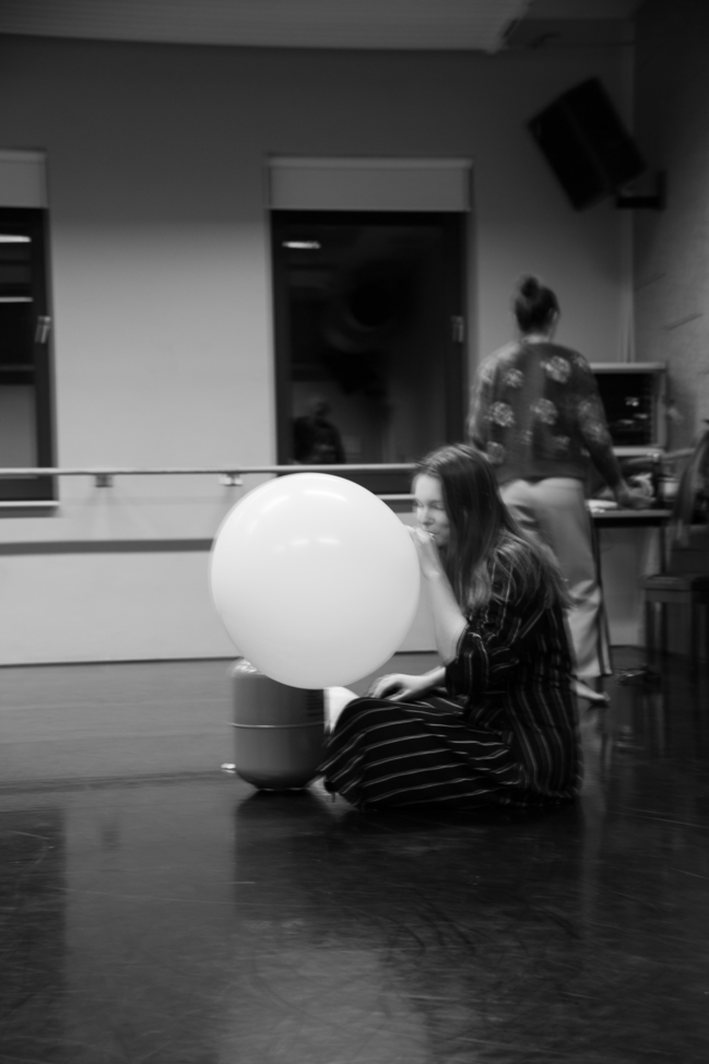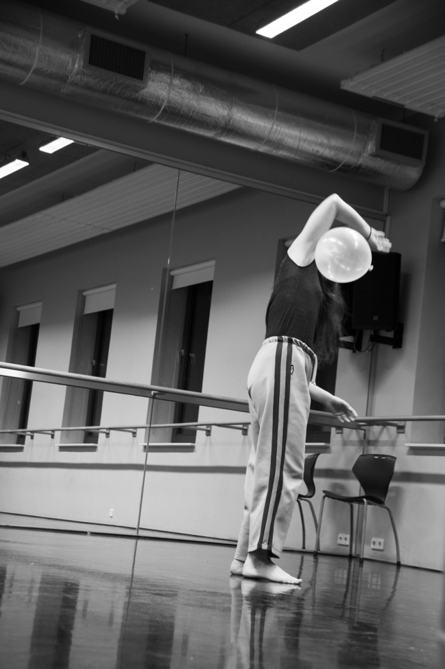 In the second part of the rehearsal, we played with the balloons. We were surprised by the quality of care that was emerging. The balloons stay attached to your body so they feel like a pet or some kind of animated cute creature that you need to take care of.