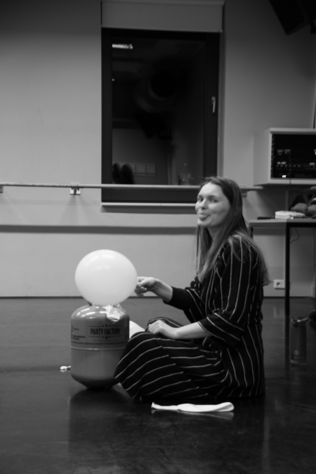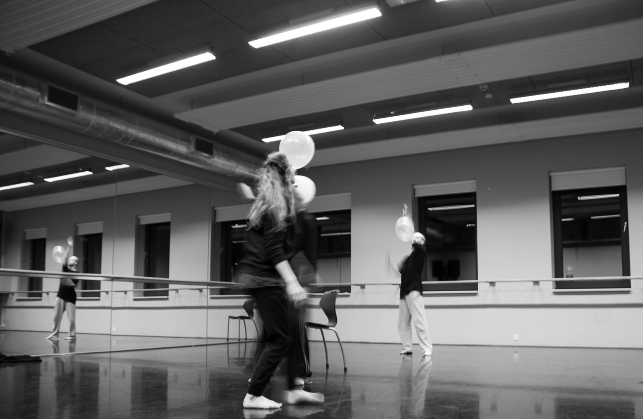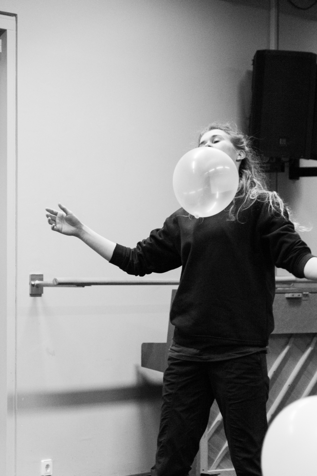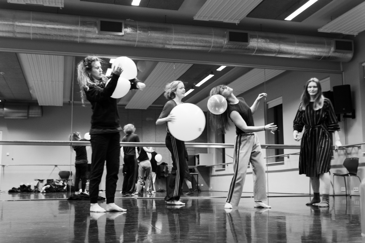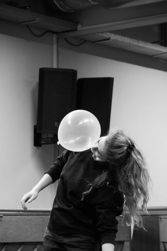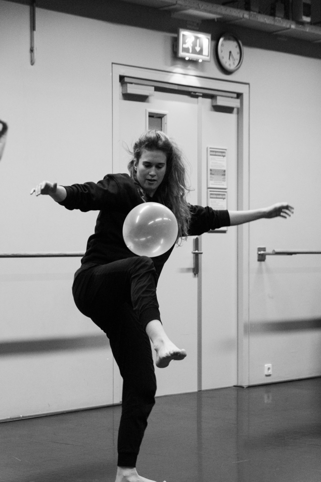 In the second part of the rehearsal, we played with the balloons. We were surprised by the quality of care that was emerging. The balloons stay attached to your body so they feel like a pet or some kind of animated cute creature that you need to take care of.