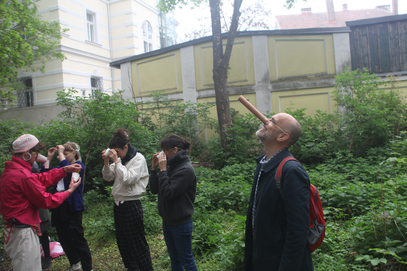 In addition you can listen to a sound performance by the Vienna-based institute for transacoustic research, performing a Feldenkrais ATM with María Auxiliadora Gálvez Pérez and get visual impressions of the guided walk by the artistic researchers Anderwald+Grond, the performance of artist and clown Florent Golfier/tYhle and the collaborative installation of graphic designers Christian Hoffelner and Katrin Heinlein.