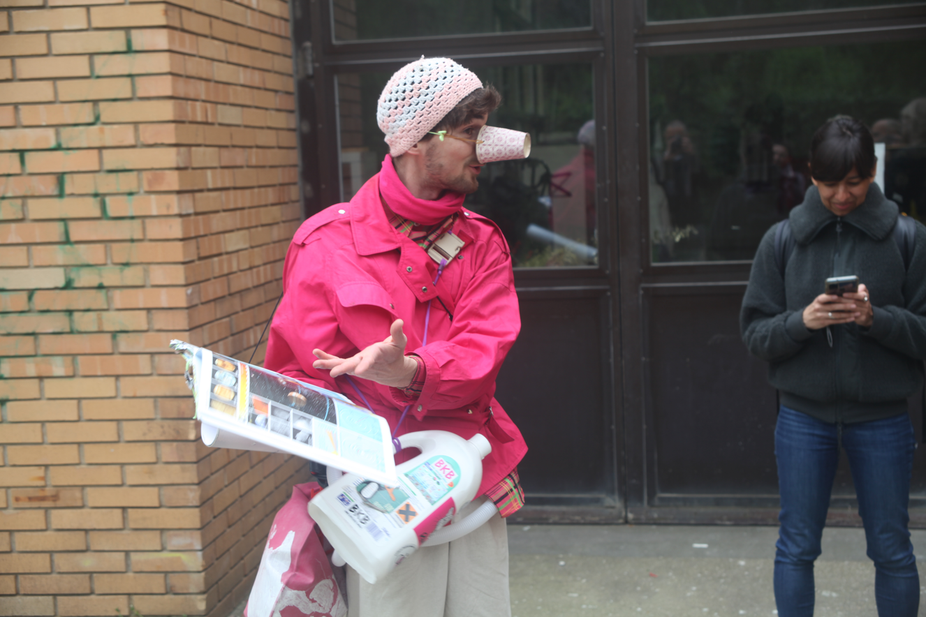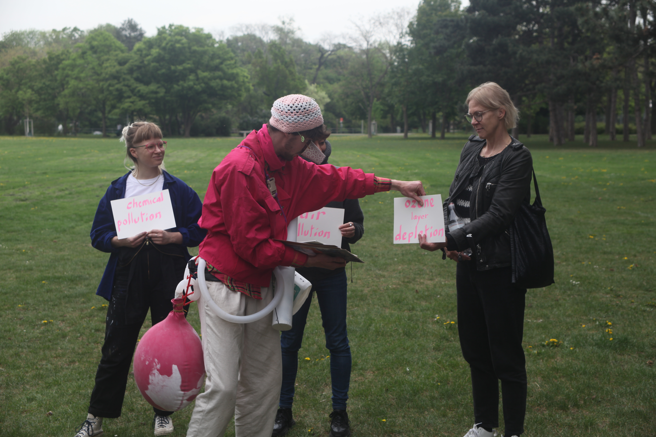 Inspired by Joseph Beuys' social plastic approach and pushed by the curiosity of my clown alter ego, Atlas, I want to explore ways of creating connections with passers-by. How can I spontaneously connect to someone and blow a space for dialogue out of the blue? Or out of the green, out of the pink? Atlas’s social plastic must be multi-colored and recycled. With Atlas, I am seeking ways to develop curiosity and create ephemeral communities where everyone feels safe enough to share, play, to confront the vertiginous complexity of the challenges our civilization is facing. How can we laugh, brainstorm, and share about climate, extinction, and the foreseen collapse of our civilization? Through Atlas I play with the narratives we all share and aim to create different ones.