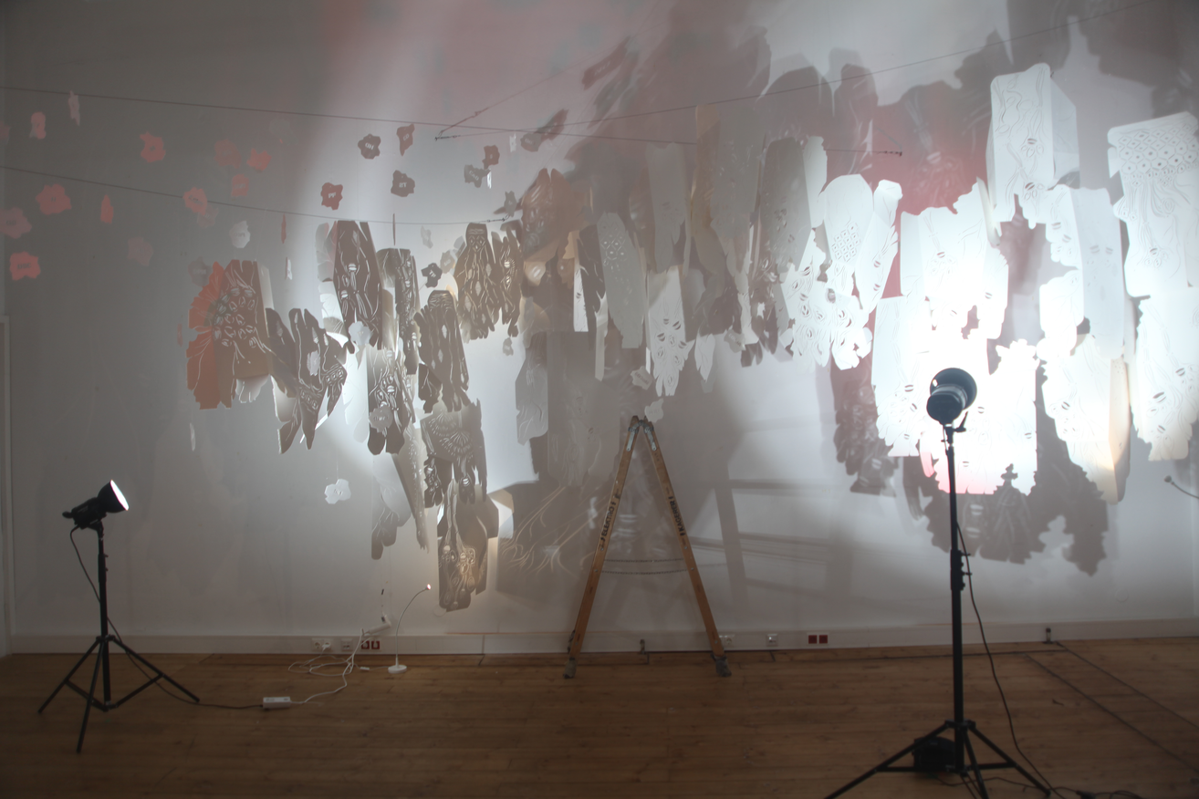 Before a textile reaches the European market, it travels approximately 35,000 km - almost around the entire globe. But even after it has been worn, it keeps traveling, swamping markets like the ones in Accra, Ghana, with cheap second-hand clothes. The two installations focus on the dizziness created by the tempo-spatial connections of textiles.