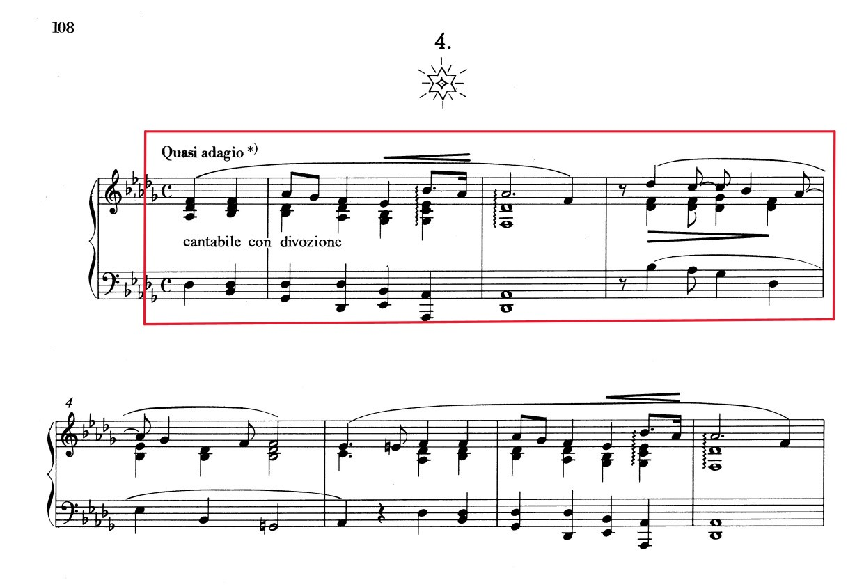 It is interesting that we can find this symbolic theme also in Liszt’s transcription “Solemn March to the Holy Grail from Parsifal” from Wagner. About this, a Liszt’s pupil, August Göllerich, just wrote on his diary what Liszt said:
