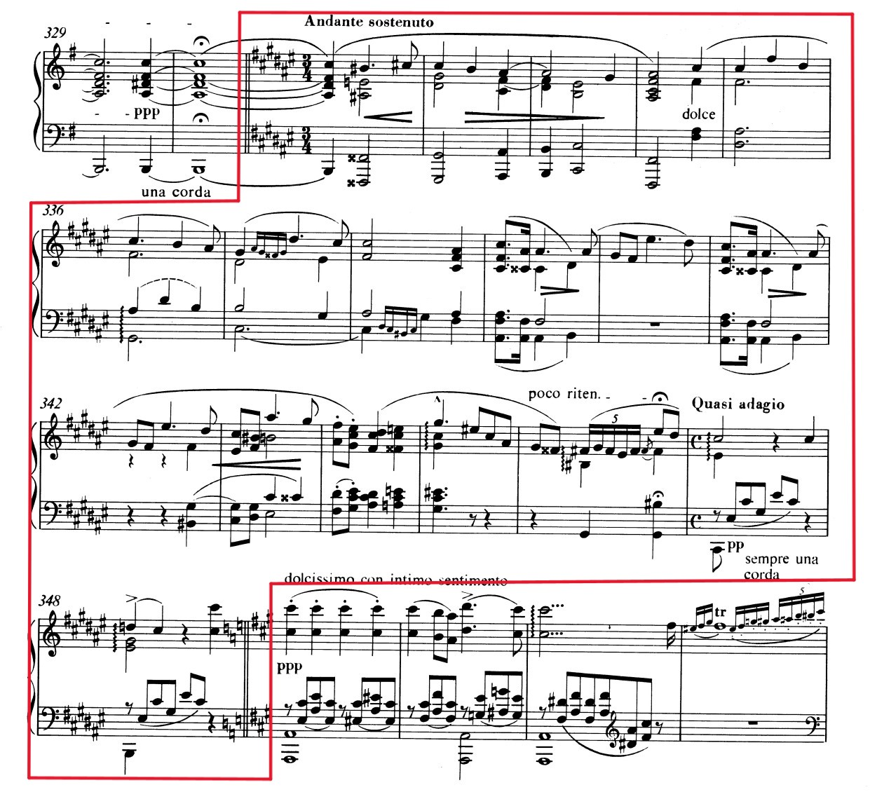 The faith theme comes back also in the Andante sostenuto at end of the piece. About this point, Szász Tibor writes: “Following a dramatic pause, a return of the Andante sostenuto symbolizes those on the right-hand side of Christ. The melody is one of religious devotion borrowed by Liszt from a lied by Maria Pavlovna. In the Sonata it functions as the motif of devotion to Christ.”27