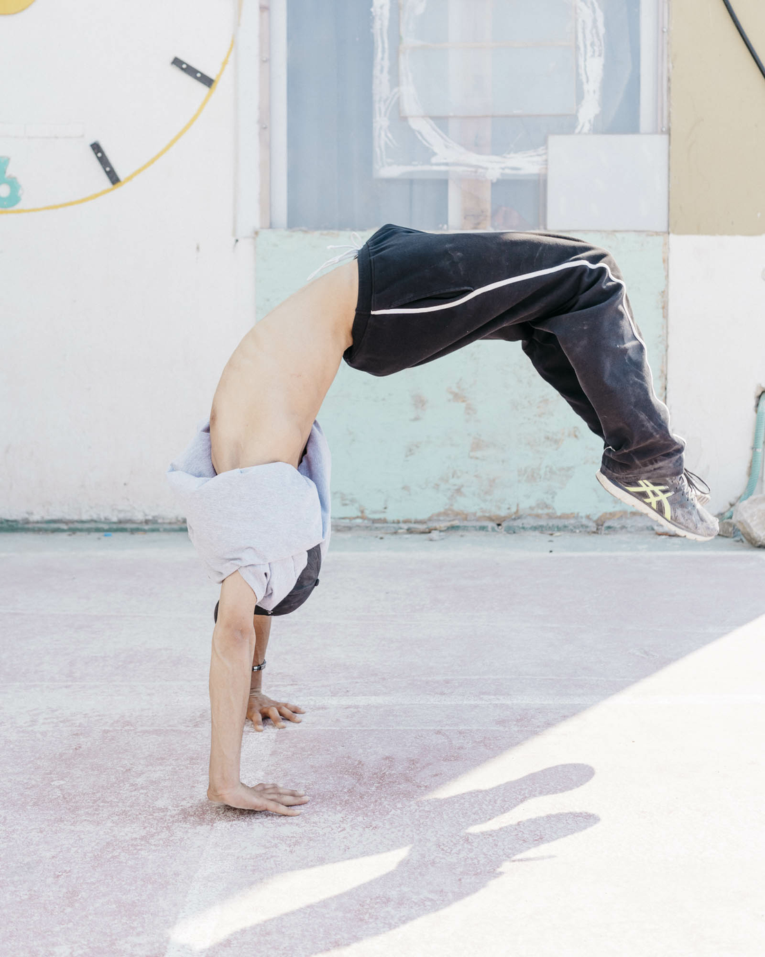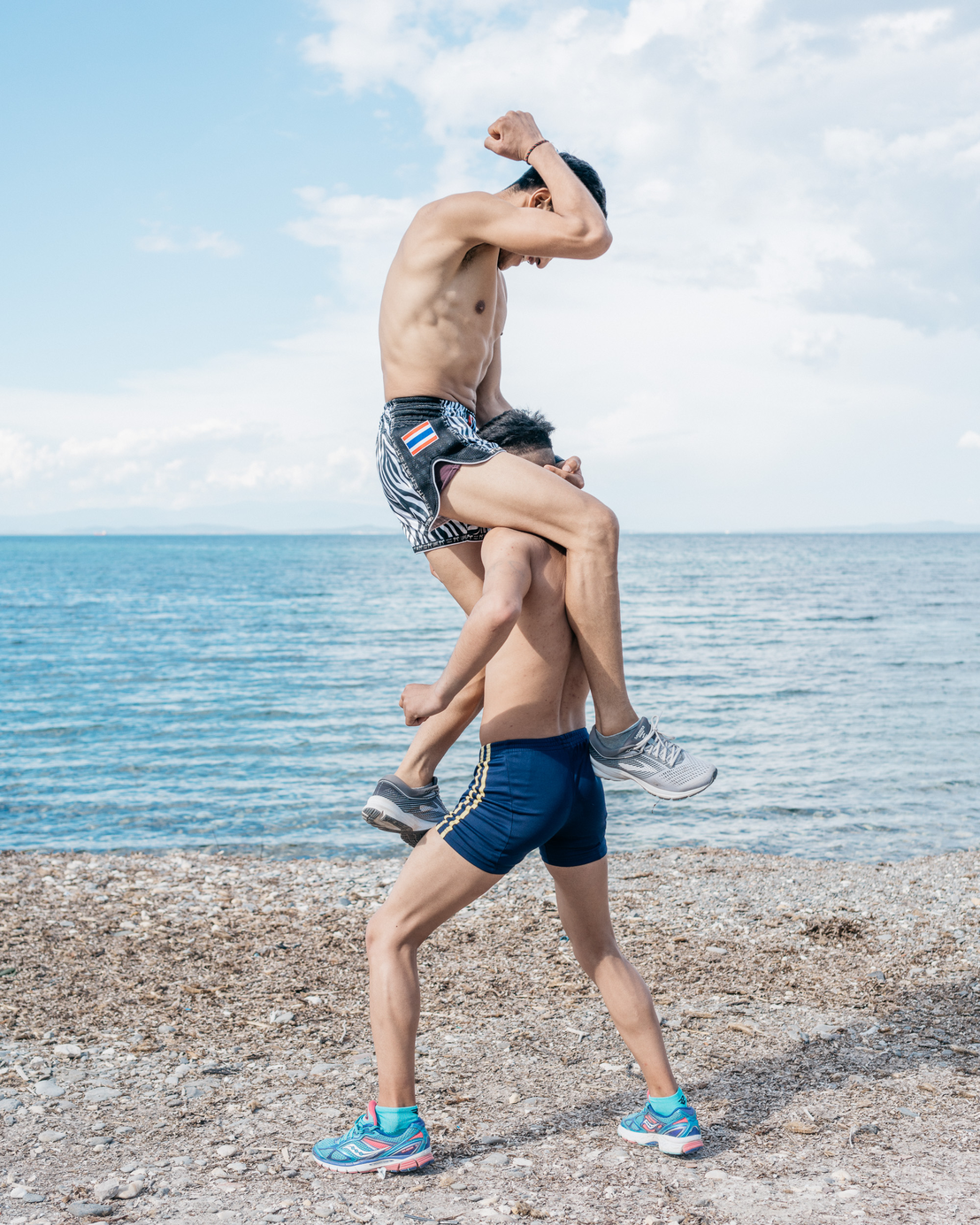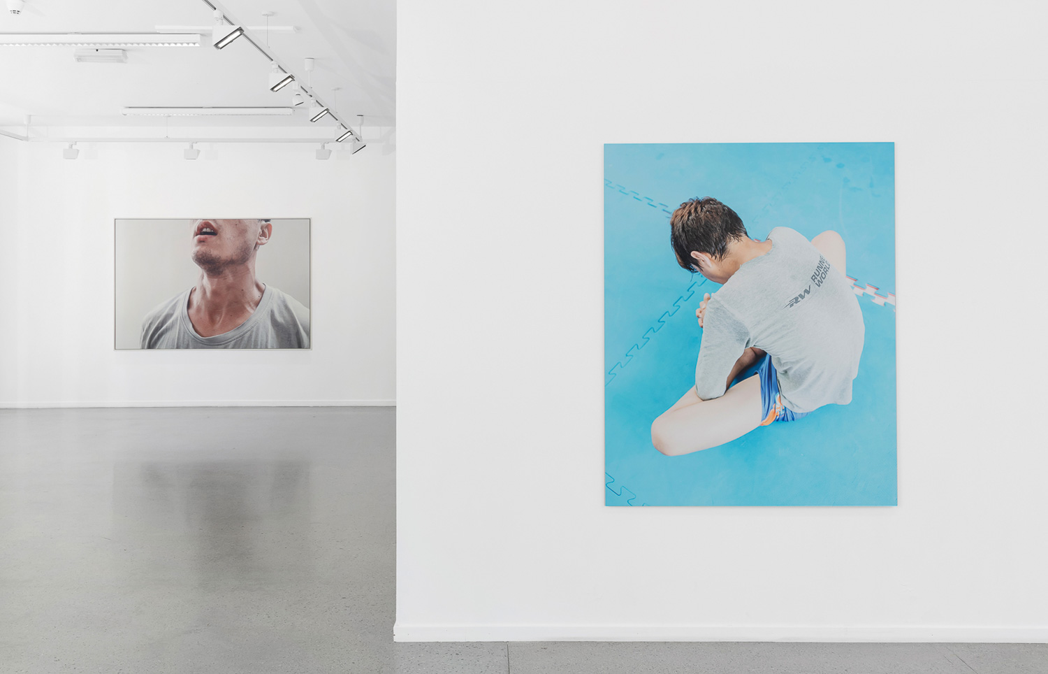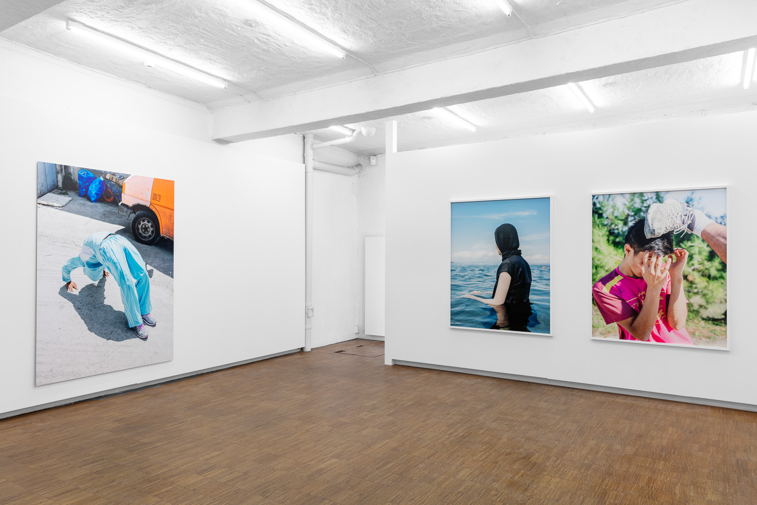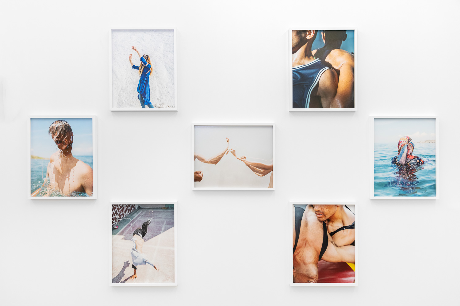 The bent and warped body parts that feature in several of the full-figure shots as well as closer images also associates to depictions of the human body frequently found in Surrealist photography, albeit in a muted register. One example is the series of close-ups of confusingly entwined, hands, legs and feet set off against the clear-blue wrestling mats. A similar interest in the contorted and twisted body can currently be found across the work of several other contemporary art photographers not working in a documentary mode. Some of these artists are Ingrid Eggen, Joanna Piotrowska, Viviane Sassen, Ingrid B. Olson, and Paul Mpagi Sepuya, who, all in their own distinct ways, use the warped human body as a site for explorations of issues such as sexuality, power dynamics, the estrangement of the human body in an increasingly automated society, or as an entryway to explore the margins of the socialized body, where muscle reflexes and more instinctive forces play out.