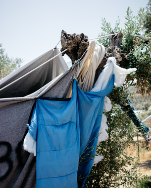 ’By directing her camera not at the dramatic events – border crossings, overloaded boats, bodies drifting ashore – but towards their material traces, this first part of Honerud’s work in Moria can be conceived as part of the move towards what has been called ‘aftermath photography’. Photographers working in this more recent mode of documentary have, as Charlotte Cotton has stated, frequently taken an ‘anti-reportage stance: slowing down image-making, remaining out of the hub of action, and arriving after the decisive moment’. Spurred in part by the destabilization of the documentary power of photography following trenchant critique of the genre’s claim to deliver ‘truths’ and ‘authenticity’, the emergence of aftermath photography has been explained as a move towards ‘practices that utilize art strategies to maintain the social relevance of the photograph’. (Sæther 2021: 111–112)