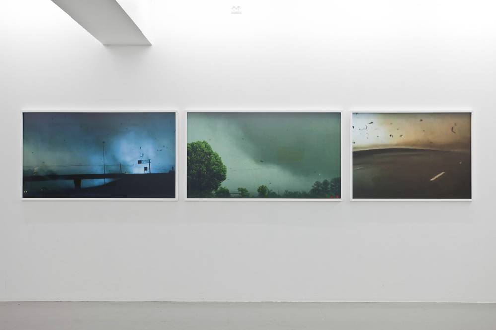 The context of Rough Seas refers back to the work of the artist J.M.W. Turner, in particular one of Turner’s most representative works, the painting entitled Rough Sea (1840–45), which expresses the formidable power of Nature in a sublime and romantic way. Many art historians have pointed out that Turner’s work is also a reflection and expression of human feelings. This is where the work of TOFT/HONERUD in this exhibition finds its proper context: A personal experience and rendition, and the subsequent public exposure of images from natural catastrophes which are simultaneously an expression for our fear of and attraction to Nature. TOFT/HONERUD have abstracted and beautified images of several catastrophes taken off the internet and news programmes such as CNN iReport and other programmes that promote citizen journalism.