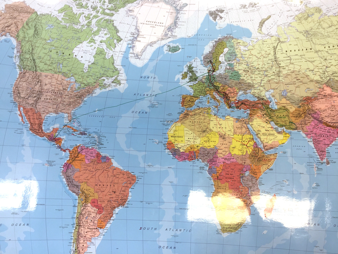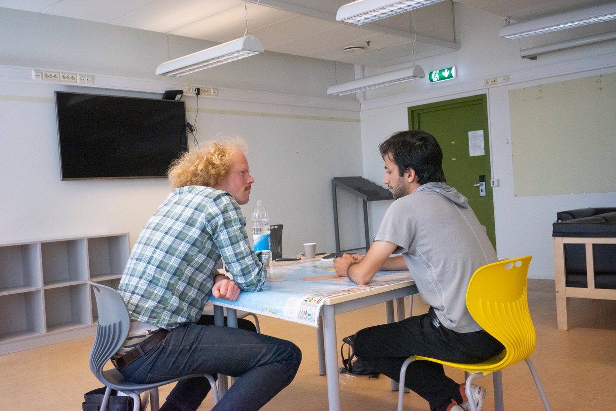 Picture 2: Refugees drawing and illustrating how they came to Norway.