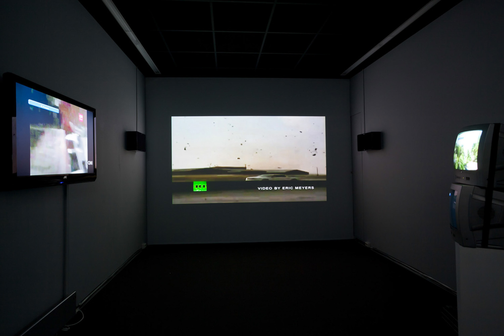 . . . The presentation at the video gallery communicates a feeling of being out-of-control by altering the volume of the recordings and looping images to put the viewer out of balance. This is counterbalanced by the aesthetic way in which the photographs are presented in still images taken from the same media sources, which confront the visitors to the gallery with a romanticized image of incidents that until now seemed ruthless and intangible. (Spreter 2011, our translation.)