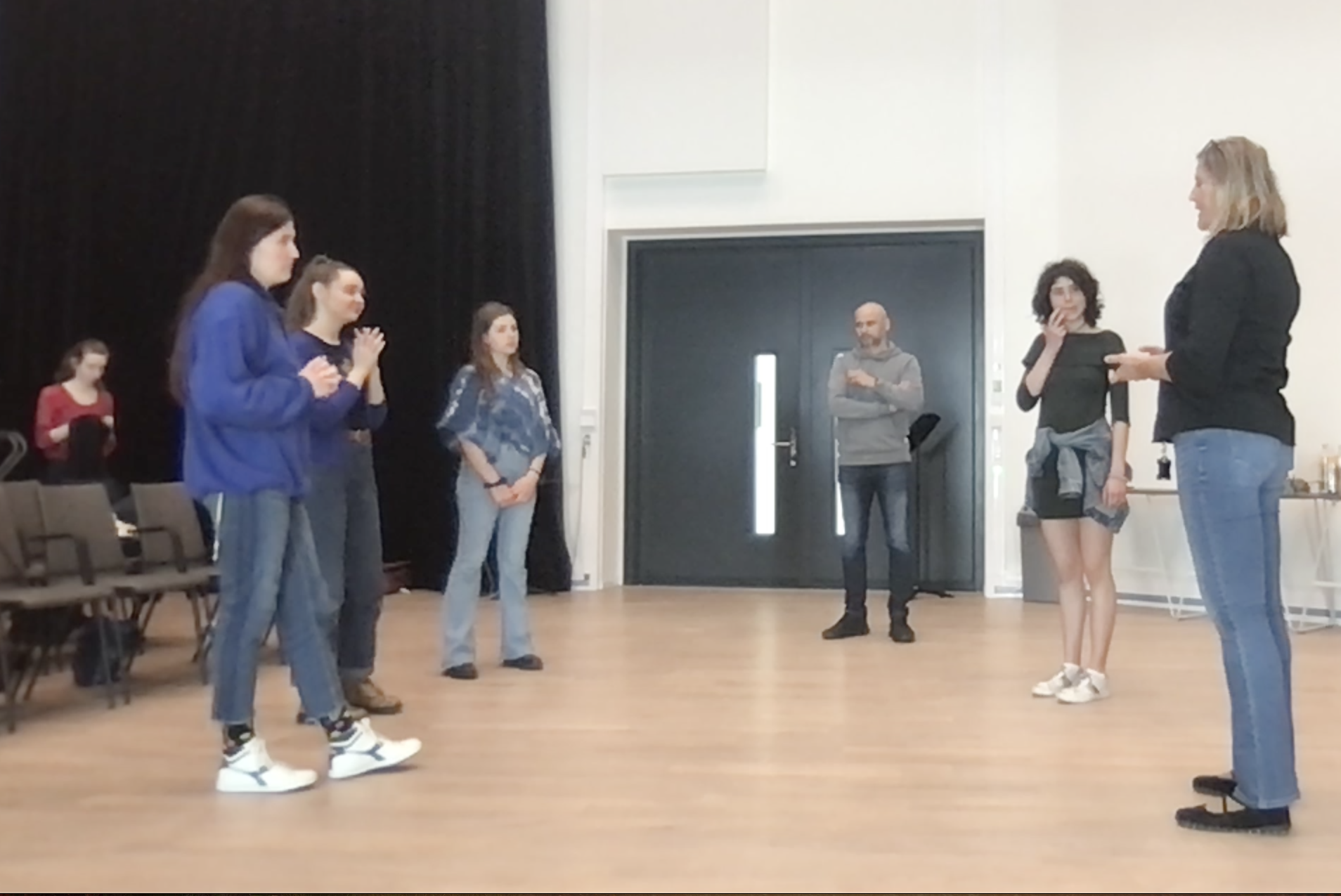 The exercises are built gradually in difficulty to perform them successfully, adding challenges and layers combining rhythms, according to students’ abilities. They are designed to challenge habits and activate the whole body, resulting in new experiences of rhythmic layers and often polyrhythmic structures. To eliminate the necessity for reading during the sessions, we decided to work without any written material or sheet music. This way the students can fully focus on the feeling and immerse themselves in the process without any other influences and obstacles. It is important to us to direct the focus to inner feel and natural process, rather than reading music or any instructions from a screen or paper. We based our starting exercises on Peter Stavrum’s videos. More advanced, polyrhythmic exercises were designed based on the interview with Udo Dahmen and our experience from his interactive presentation at AEC conference in 2020 in Trondheim.