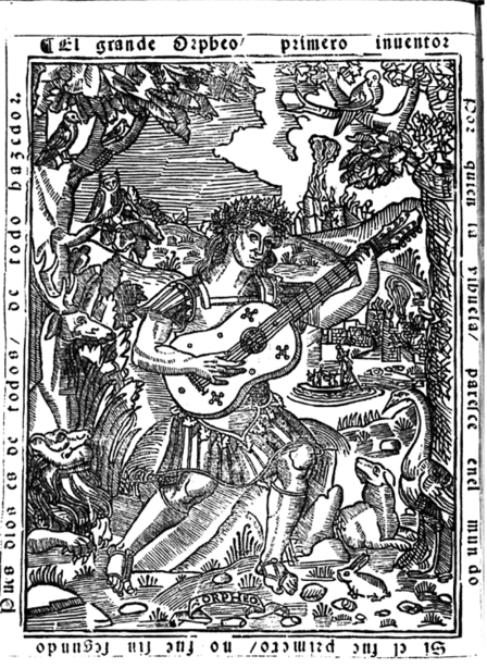 This indicates that the compositions were invented on the spot, played and later written down in tablature.62 Luis Milán was proclaiming himself to be “The Second Orpheus”, also pictured as the adherent of Orpheus like in the preface of El Maestro confirming this statement with the text hemming the engraving.63 He was comparing vihuela to the Orpheus’s Lyra. In a comparison with later publications, it is remarkable the absence of the intabulation of sacred pieces in El Maestro. Luis Gásser is introducing a theory about Milán’s religious orientation being converso (a Jew who converted to Catholicism) supporting his theory with also with the dedication of El Maestro to The King of Portugal despite the fact that Milán was sponsored by The Duke of Calabria and Germanie de Foix. The Inquisition was not so active in Portugal, where a lot of converted Jewish people took refuge.64