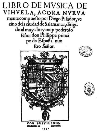 Diego Pisador77(1509/1510 - after 1557) is a rather controversial figure in the vihuela world. He was born around 1509 to parents Alonso Pisador and Isabel Ortiz. His mother was probably the illegitimate daughter of Alfonso de Fonesco III, who served as Archbishop de Santiago and was a great patron of artistic and musical life in Salamanca. Pisador likely received his musical education in the Cathedral of Salamanca,78 where he later became a member of the monastery. It is possible that this is where he met Francisco Daza, whose grandson was the vihuelist Esteban Daza. After his mother’s death, Diego Pisador used much of his estate funds to print his vihuela book Libro de la música de vihuela.79 He got into a dispute with his brother over this. Pisador counted on the support of his father, who tried unsuccessfully to convince him to abolish the publication of his book. His father eventually gave him a considerable sum of money to pay off the debts associated with Libro de la música de vihuela, which was eventually published in Salamanca in 1552. Pisador is said to have worked on this collection for fifteen years, which would mean that he began writing it before Milán’s El Maestro was published.80 The controversial nature of this author has been pointed out, for example, by musicologists Francisco Roa and Felipe Gertrúdix. In their opinion, he was not a very talented composer, as evidenced by the frequency of intabulations of works by Josquin de Préz (eight complete masses). Pisador is criticized for his low level of compositional technique compared to other vihuelists, mainly due to the poor overall quality of his music and the significant number of errors in his publication.81 It remains unknown if, judging by the high number of intabulated maasses he included in Libro de la música de vihuela, he was merely trying to please his patron Philip II.