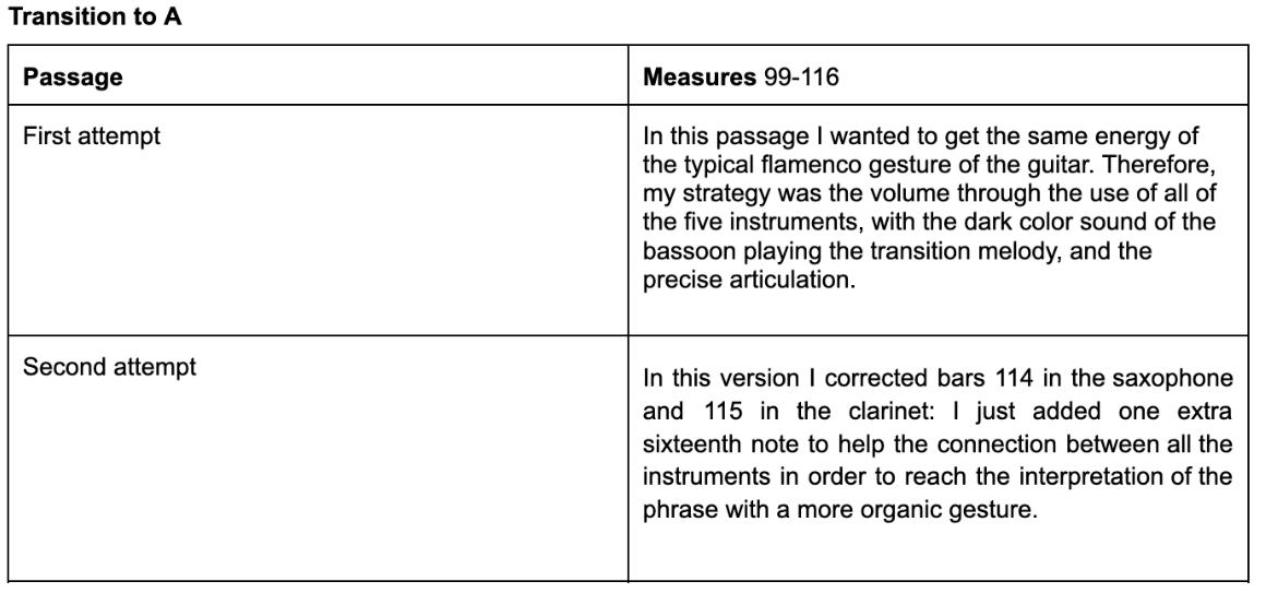 Figure 12 (m.99-116): the transition to A’ starts with a series of 8 bars of tension and release of Faug5 - Fmaj and it follows with a modulation to Db major introducing a typical flamenco gesture simulating the accompaniment of a guitar.