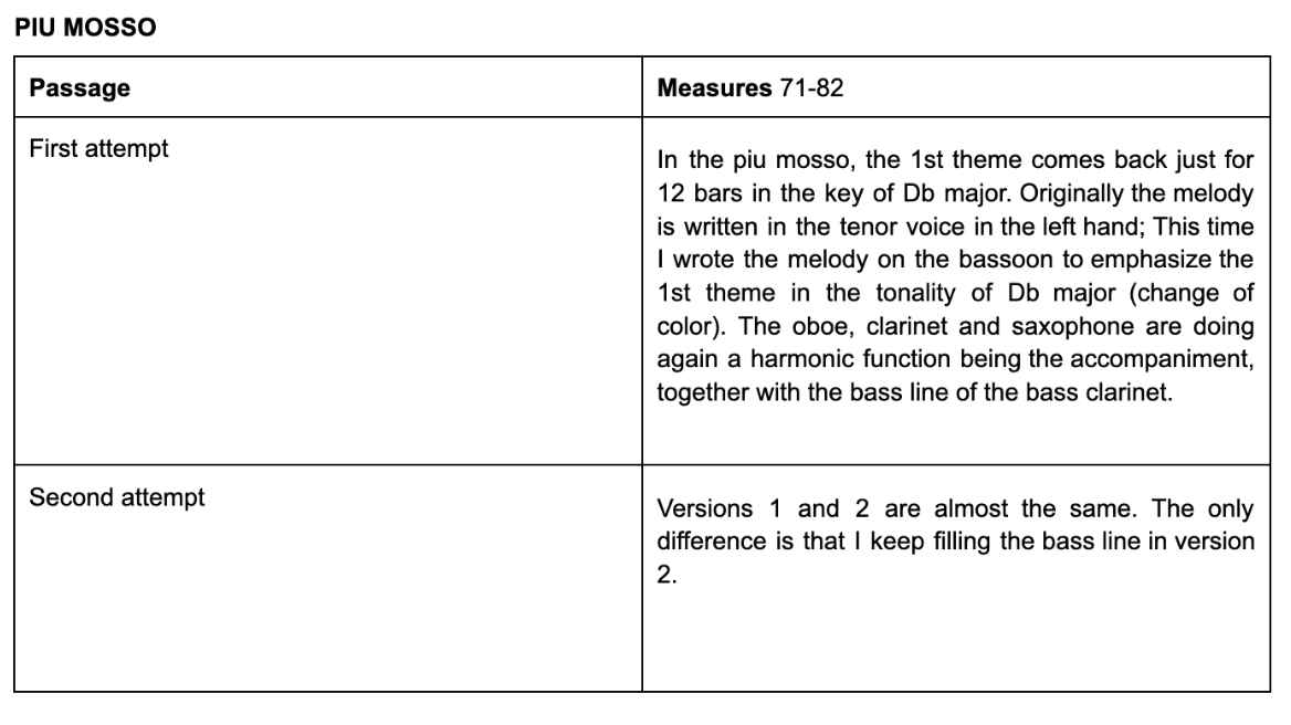 Graphic example version 1 and 2 (B section: repetition of 1st theme in F minor and F major)