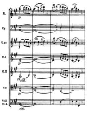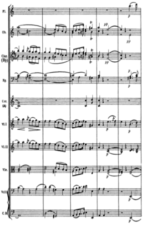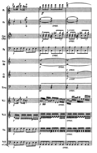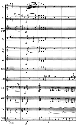 One of the characteristics of Viotti's concertos was the imaginative orchestration which used the colour of the wind section in an innovative way, treating them as independent from the strings. Thus, both in the exposition of theme A and theme B, Viotti masterfully utilises the colours provided by the different sections in the orchestra: he distributes the thematic material between different groups of instruments responding to each other, and then after he teams them up, incrementing the tension, and building up a fiery Tutti explosion before the Solo entrance.