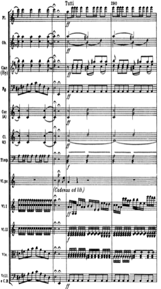 Now, in a French “military” concerto, the simultaneity of the solo’s closure and the martial tutti might well have combined to suggest a triumphant arrival. The place where we can see this kind of rhetoric best exemplified would be in the tutti that follows the solo violin cadenza, inviting listeners to hear the orchestra’s subsequent music as a kind of victory march for the soloist, who has only just labored through a virtuoso journey to arrive at a hero’s welcome.