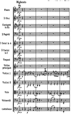In this particular concerto, the importance of the cantabile B theme (originally introduced in maggiore) is worthy to note. The general form of the Concerto is close to a Sonata form, but these cantabile episodes that come after the virtuosic outbursts of the solo violin for closing the section give a rhapsodic feel to the concerto, in which no part is repeated in a literal manner, even in the reprise. In the first exposition of this singing theme, Viotti creates warm and special sonorities resulting from an unusual combination of instruments ( flute, bassoon, and violins).