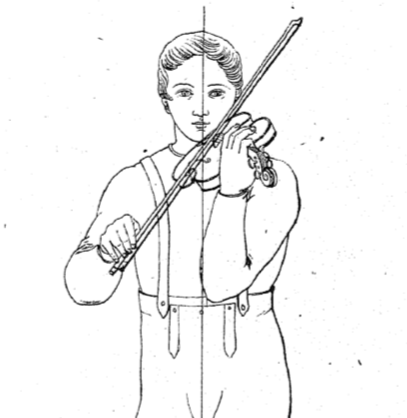 Children or young people whose shoulders are not yet broad enough to support the violin, and women who play this instrument and who have nothing in their attire to help them hold it easily and inclined to the right, may fill in the existing gap between the left shoulder and the violin by placing a thick handkerchief or a kind of cushion there; experience has proved to us that this method offers great advantages without any inconvenience, and that, with the handkerchief placed under the clothing on the shoulder, it should not even be noticed1.