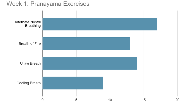 It should be noted that not every asana or pranayama exercise was practised by every participant and in some cases participants chose to stick with one exercise per category to practise for the full first week. Whilst this establishes a proficient grounding in the particular exercise, not every participant's yoga routine looked the same so this can contribute to varying results. However, the experience of practising yoga should be very personal as everyone's body and capabilities are different. Therefore, a singular routine for every participant would not encourage the participants to practise body awareness. By creating their own routine they are cultivating their autonomy over their bodies and thinking critically on what is best for them and their experience, rather than blindly follow someone else’s routine. However, it is relevant to consider that therapeutic methods will not always feel comfortable and may feel counter-intuitive. In that sense it is important to identify what feels uncomfortable because it is difficult, and what feels uncomfortable because it is potentially harmful