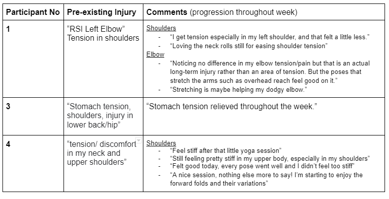 “Loving the neck rolls still for easing shoulder tension” Participant 1