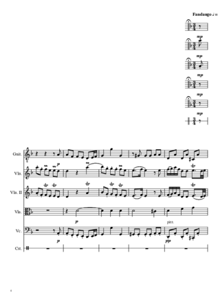 Copado´s "El Fandanguito" is full of temperament and is floridly embellished. I transcribed the solo-ritornellos trying to reach the most exact notation. By using applications to slow down the speed of the recording, I tried to produce a text that would most accurately reflect the complexity of ornamentation, rhythmic variety, rubato, and intonation.
