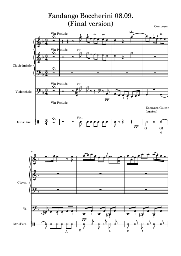 For my second big crossover collage, I went for a more complex arrangement of the XVIII century Fandango. I chose Boccherini´s Fandango from his quintet G.448 and set it for Cembalo obligato, Baroque Guitar, Bass, Violin, and Percussion. I created a contrasting improvisation middle section with a Colombian Fandango-Ground called "Guabina". Preludes and bridges were added as well.