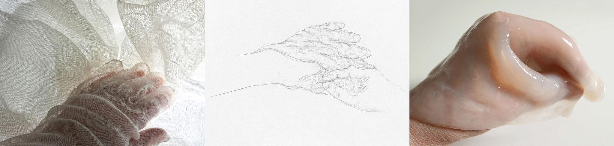 The project Stitches and Sutures focuses on visually representing bodily sensations in the form of pencil drawings, textile structures and photographs of biological membranes.