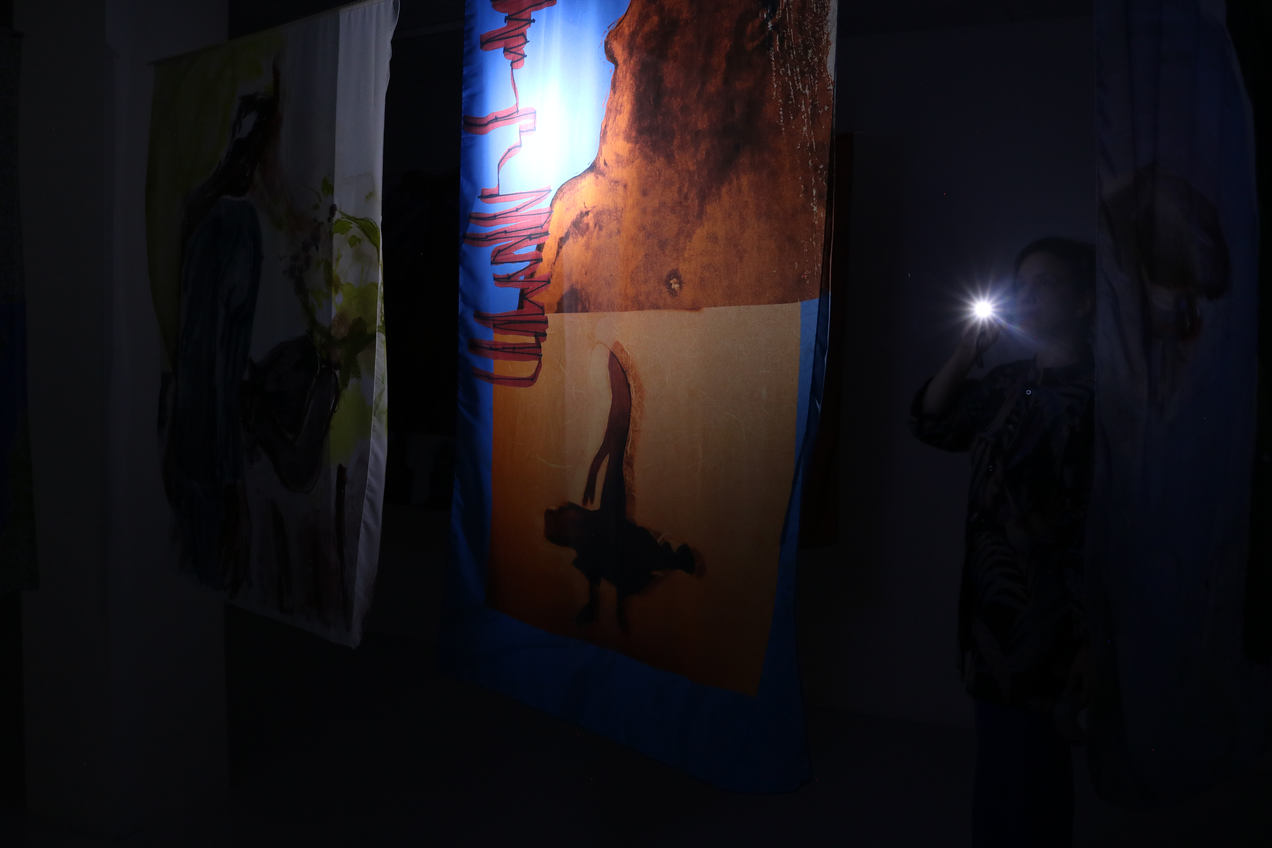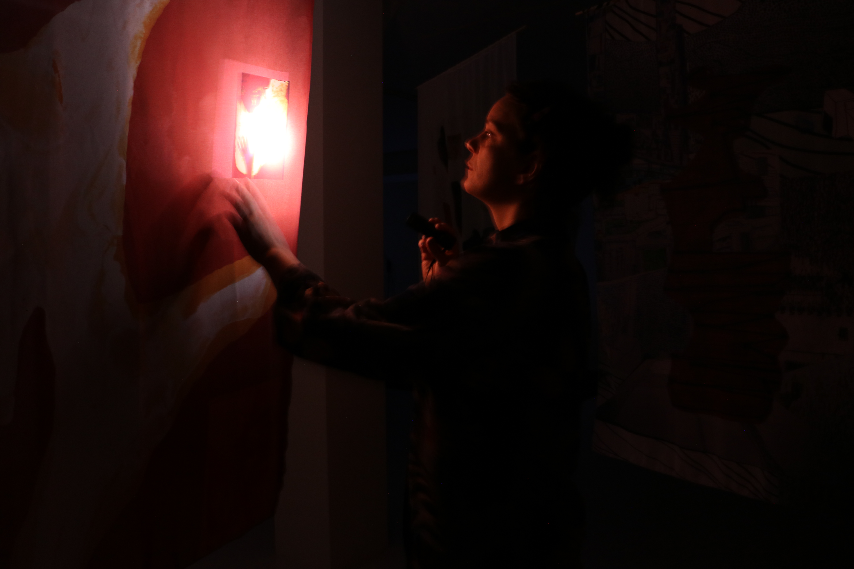 Shrouded in darkness and viewed with a torch, it asks the question - What do we see? What do we choose to look at, for how long, and when do we look away? How do we see? Who is seeing?