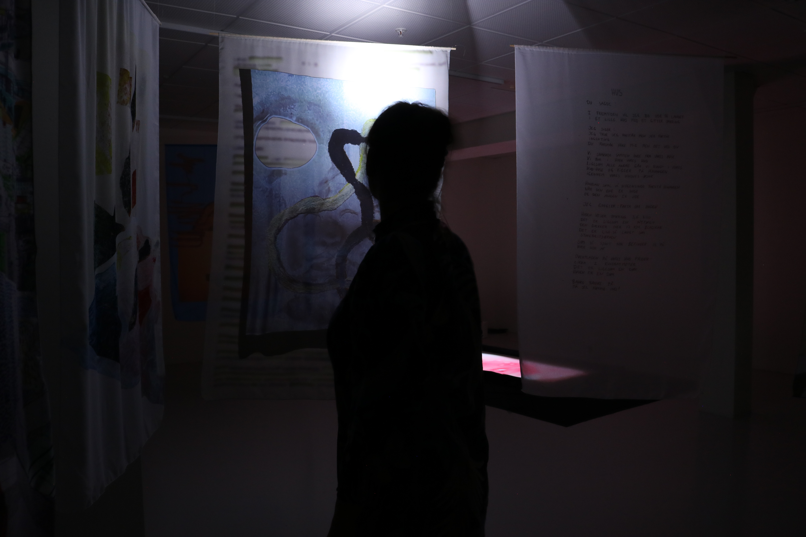 The works in Defining You, Finding You reinterpret official documents - a sibling’s A4 autism spectrum diagnosis and the Thematic Apperception Test Card, an illustrative card used for psychological assessment. These two official diagnostic documents are remediated in this work through the lens of conversation between the artist and her brother and the inclusion of the brother’s childhood drawings. This remediation questions the construction and conveyance of a diagnosis by asking: what if? What if a sister, rather than a medical practitioner, interpreted and presented a diagnosis? What if the the standard white A4 page became something tactile and sensorial?