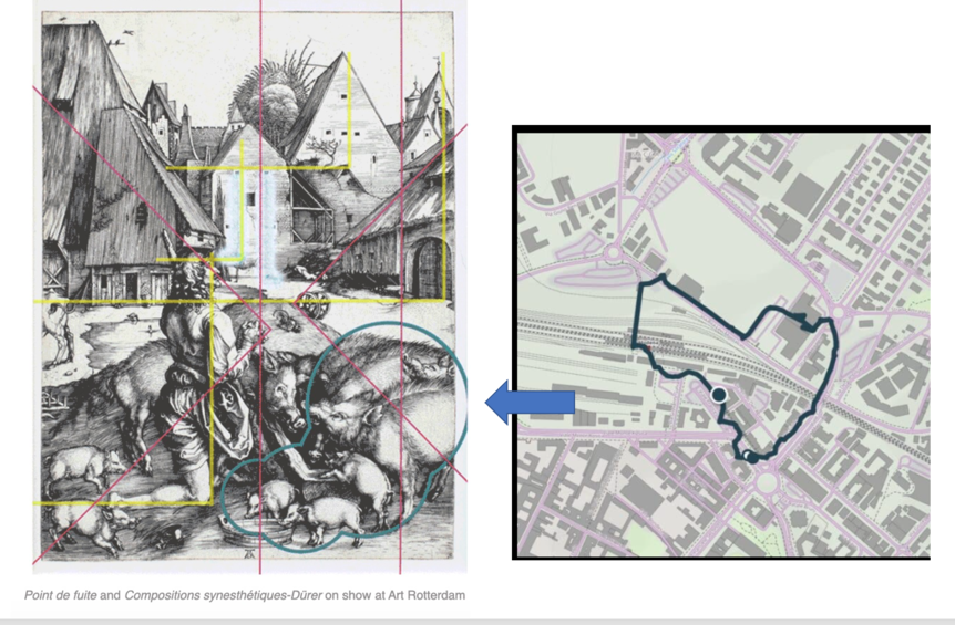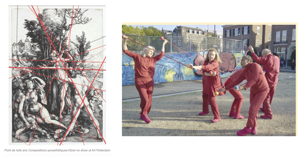 Artist Laurence Aëgerter directs the lines outside. She connects things with eachother, you did not think they where cnnected at first site.....