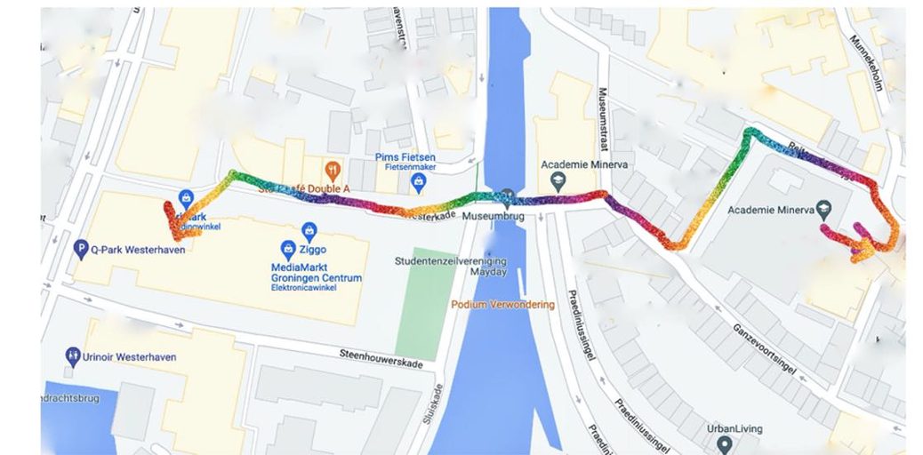 The experiment is a walking performance through the center of Groningen exicuted with art students of arts school Minerva oktober 2022.