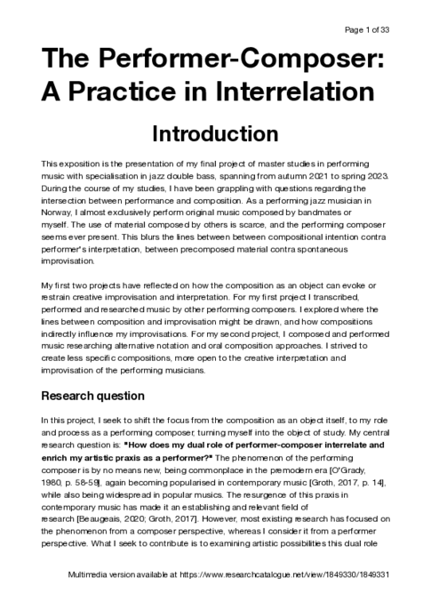 “How can the process of aurally transcribing compositions lead to reflections on interpretation for the performing composer, and how do jazz compositions afford the performer to co-create the artistic product through interpretation?”