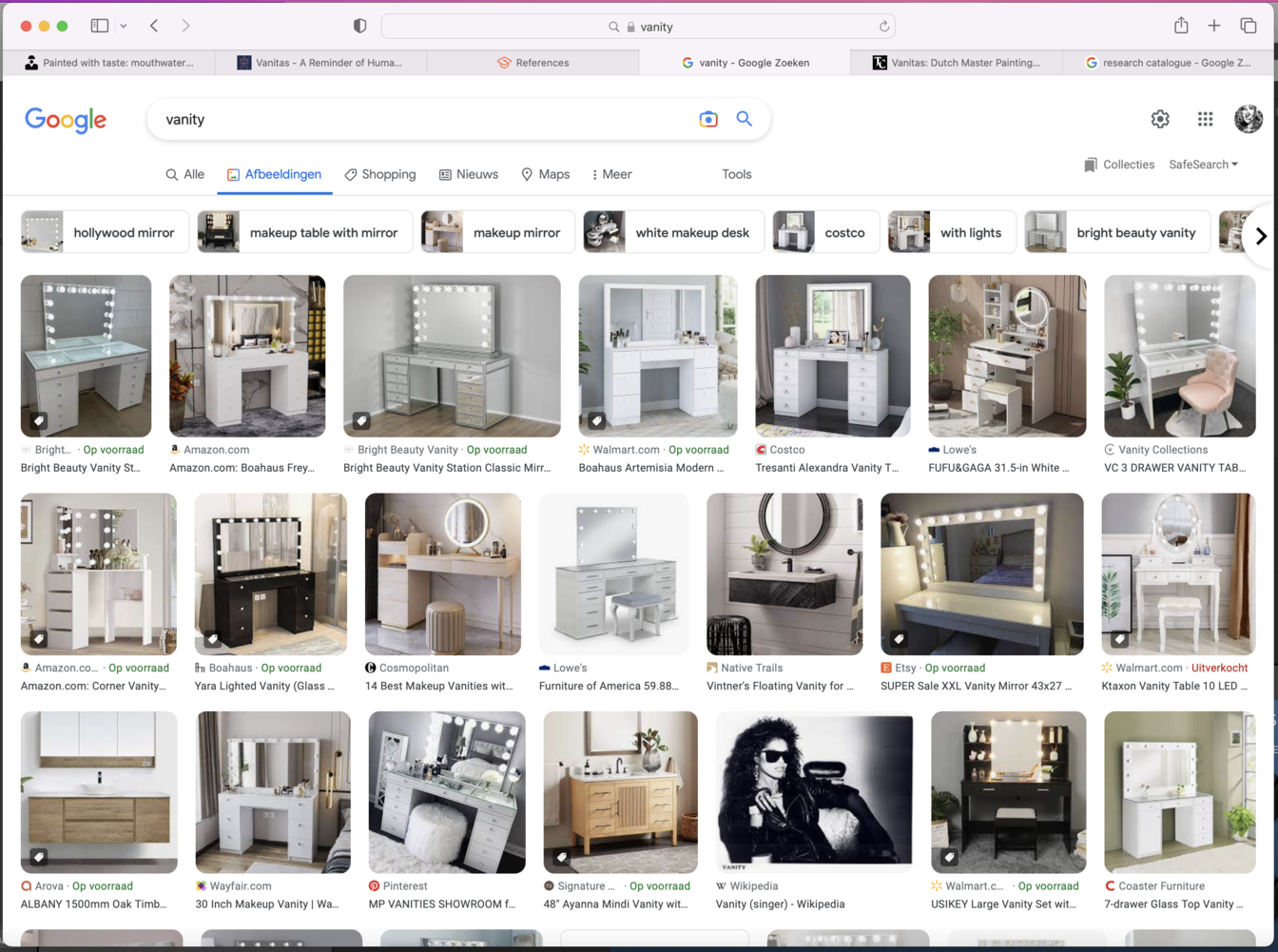 Going back to this mapping, reading about Clara Peeters and Vanitas, trying to unify a part of my interest with that which is emerging I come to the theme Vanity.