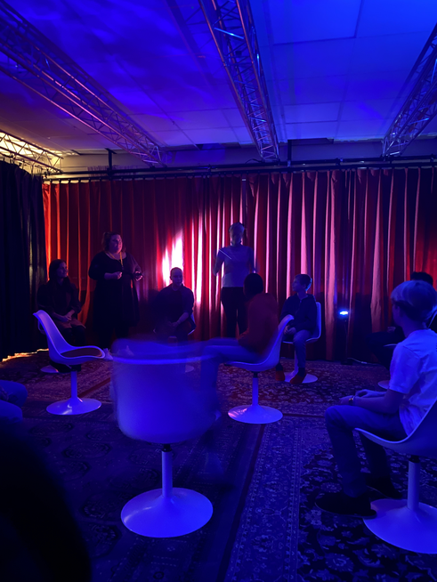 The digital Square- The art of impact Project summary A democratic conversation in artistic form on a digital square. Does immersive storytelling have potential in the public space? The dramaturgy in the experiments is non-linear and is based on theatre traditions as well as acting and documentary narrative traditions. We started up the relation to the audience in Skärholmen,Stockholm with our newly produced Virtual Reality story" The Blue Blue" &together with two actors we walk between the two rooms,seamless with no discrepanzy between the different medias and together with the audience we solve a problem. We have test groups and workshops together with our audience -from 12 years.Your look at you and yours. My look at me and mine. And so we meet. Phase 2 of the research will connect young people , in Skärholmen and Soweto where images via projection mapping take place on the facades.The methods is once again from the 2000 year old theatre tradition combined with documentary storytelling and the most modern immersive and digital tools.